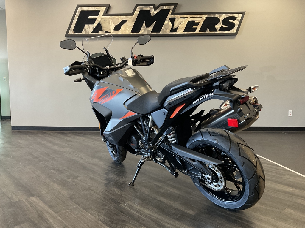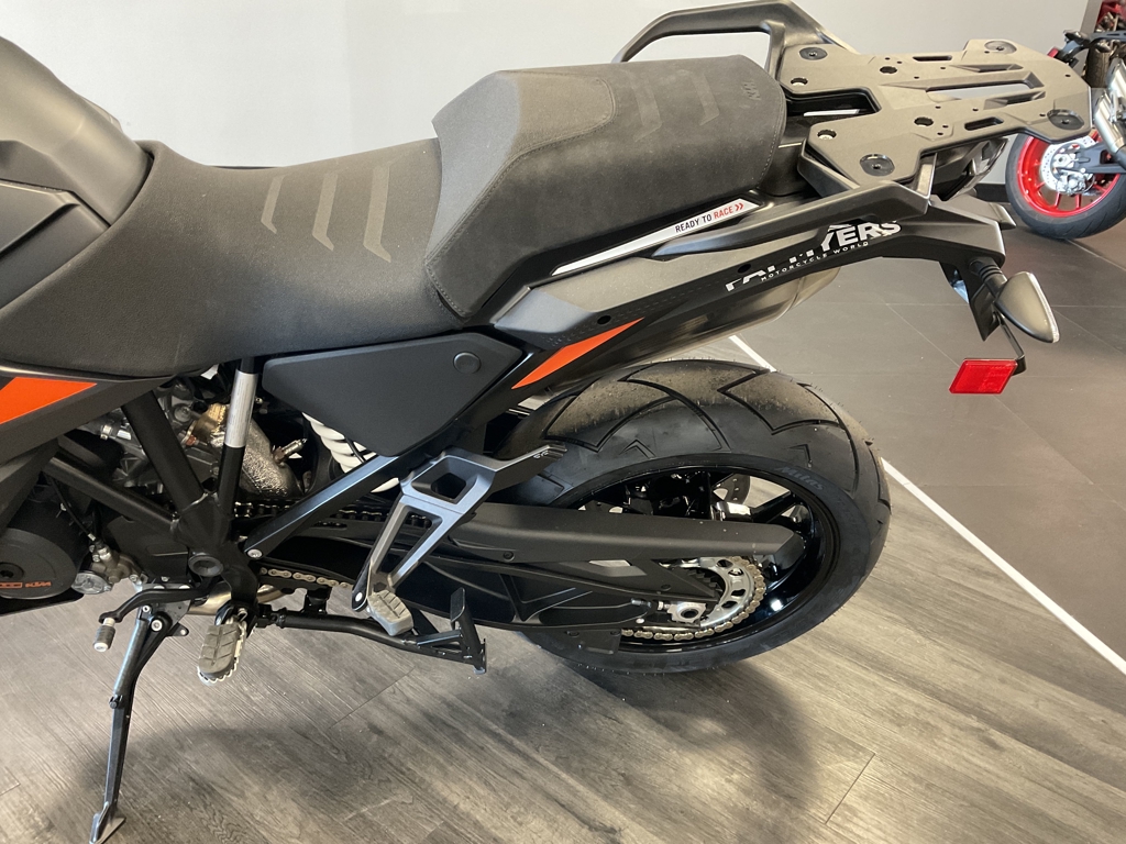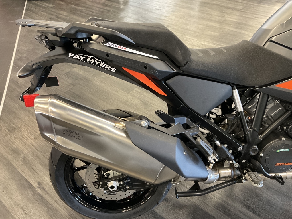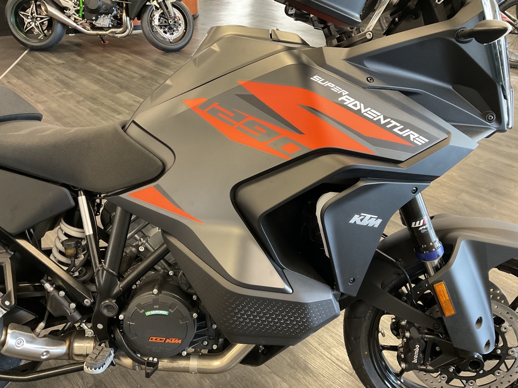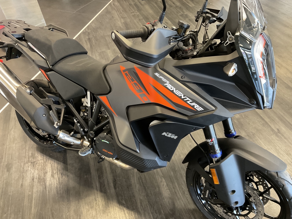 THE WORLD JUST GOT SMALLER. Covering ground quickly and effortlessly is what the KTM 1290 SUPER ADVENTURE S is made for. An Adventure-speced 1,301 cc V-Twin means that entire cross-country journeys are dispatched easily, while Adaptive Cruise Control and Semi-active Suspension together with reworked rider-focused ergonomics and technology bring agility and long distance comfort to an entirely new level. It's a bold claim, but we'll make it - the KTM 1290 SUPER ADVENTURE S is the new benchmark. ENGINE: With a sledgehammer hit of power and earth-twisting torque, the proven V-twin LC8 engine once again takes the accolades as the most compact, lightest, and best performing engine in the segment. Its greener too, and will deliver 15,000 km service intervals and low fuel consumption, trip after trip, mile after mile. FRAME: A new, reworked, and lightweight, chrome-molybdenum stainless steel trellis frame featuring laser-cut tubes, combines with forged elements for an ultra-strong component on the KTM 1290 SUPER ADVENTURE S. The steering head has been moved 15 mm rearwards, to shorten the overall frame for improved cornering behavior, while the front engine mount has been rotated forward by 2 degrees to aid in hard acceleration, keeping the front end firmly planted on the ground. A newly designed, lightweight, and high-strength aluminum side stand completes the package. HANDLEBAR: Wide, adjustable, and ready for long hours in the saddle, the high-strength tapered aluminum handlebars are designed to provide riders with greater control, and uncompromised comfort. Newly developed and robust handguards have also been designed for optimal aerodynamic behavior when it comes to high-speed stability. LED HEADLIGHT: Turning night into day, the new cornering integrated LED headlight has been designed to integrate the front Radar Sensor on the KTM 1290 SUPER ADVENTURE S, flanked by cornering and day time running lights. This results in a clean, KTM-distinctive look which provides impeccable illumination with a wide beam pattern to light up the road ahead. Advertised pricing excludes applicable taxes title and licensing and are subject to change without notice. The illustrated vehicles may vary in selected details from the production models and some illustrations feature optional equipment available at additional cost. All information concerning the scope of supply, appearance, services, dimensions and weights is non-binding and specified with the proviso that errors, for instance in printing, setting and/or typing, may occur; such information is subject to change without notice. The consumption values stated refer to the roadworthy series condition of the vehicles at the time of factory delivery. See dealer for details.