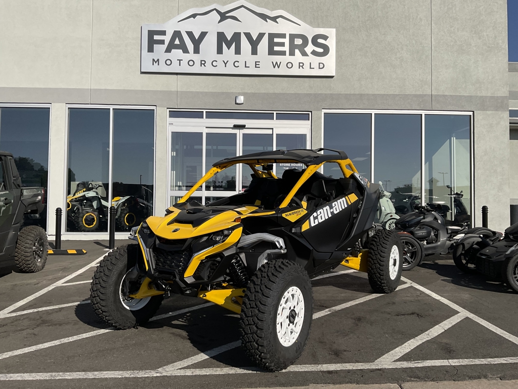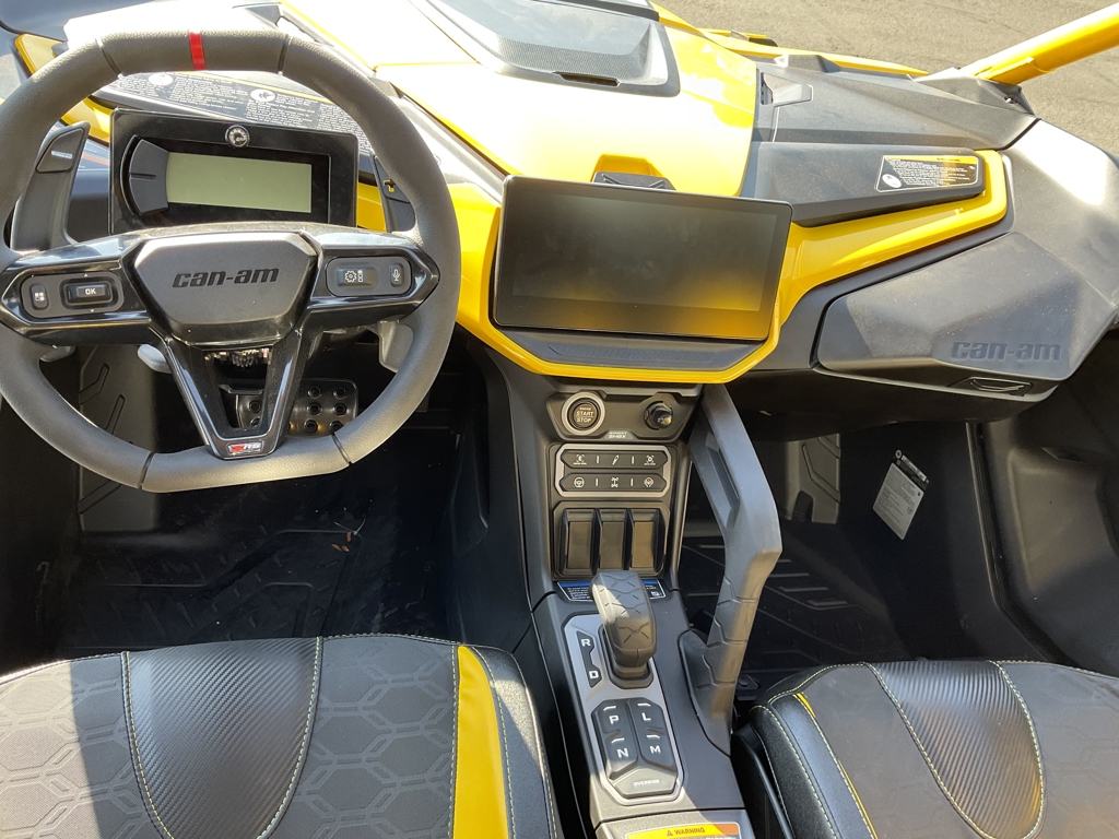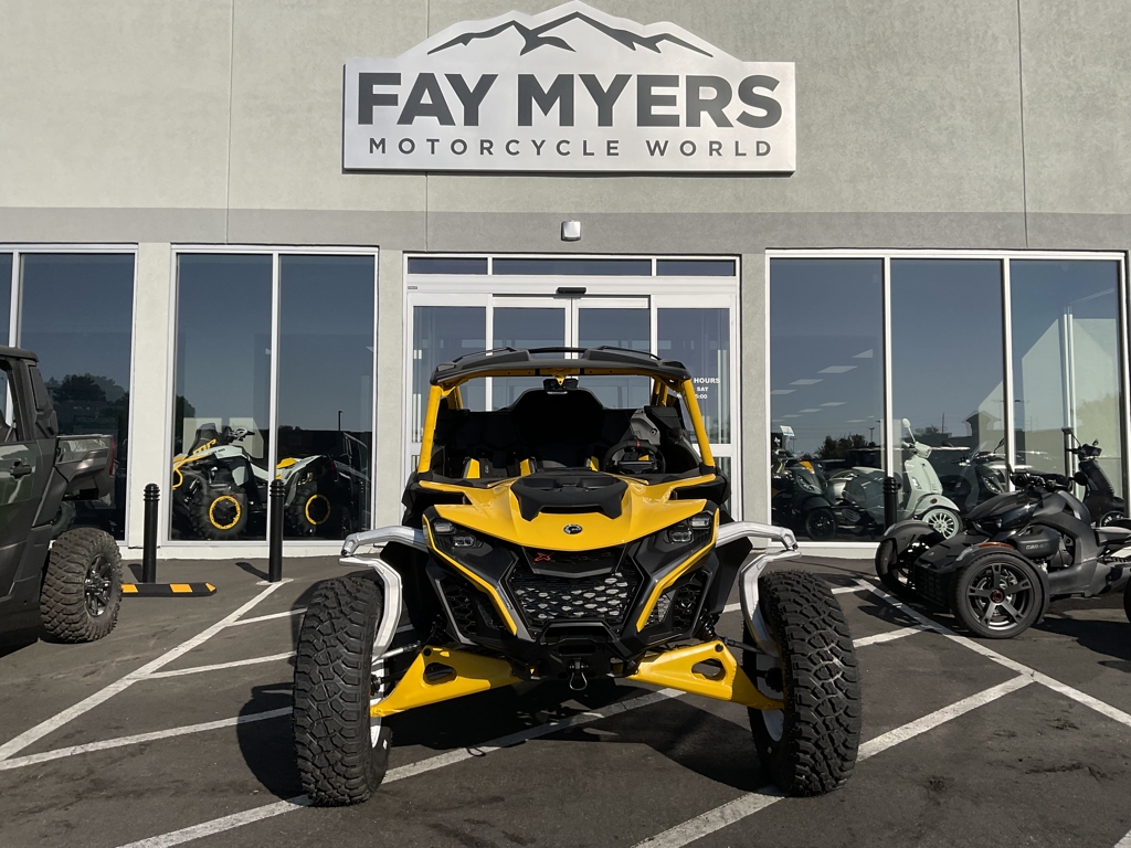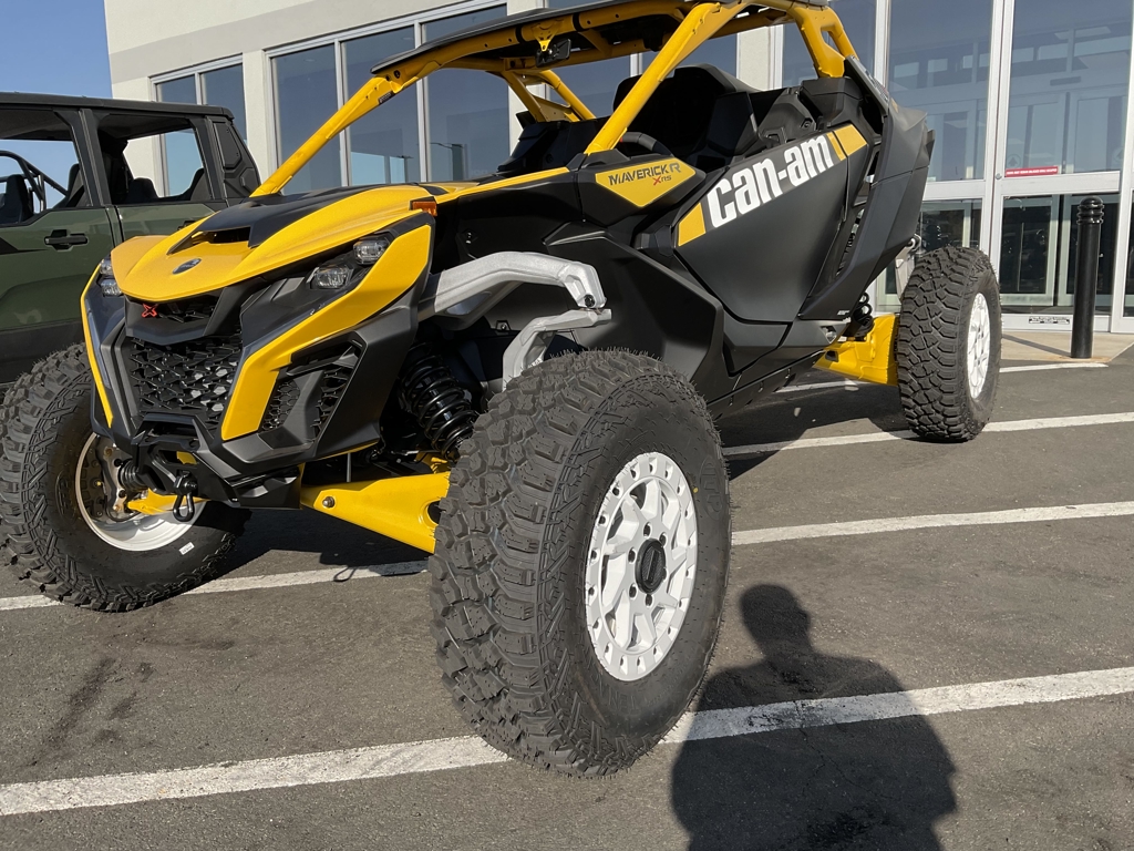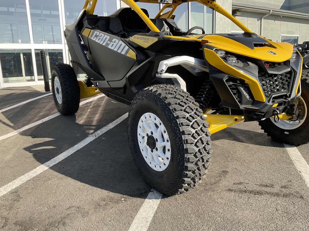SURE TO THRILL. Grab life by the throttle with 240 HP and unrivaled suspension travel that'll make your off-roading dreams come true. With a 240- HP ROTAX engine, DCT transmission, FOX"  2.5 PODIUM Piggyback with QS3"  easy adjustable shocks and heavy-duty tall knuckle suspension, this baby is sure to thrill. HIGHLIGHTS: "¢ Maverick R top features "¢ 4-point harness with shoulder pads "¢ Rear camera "¢ 10.25 in. touchscreen display "¢ Telescopic steering wheel with infotainment controls4-point harness with shoulder pads THE SHEER POWER OF 240 HP The Rotax turbocharged triple-cylinder engine supplies unrivaled horsepower that you'll feel and hear. With 3 driving modes, including an anti-lag system in Sport+, you can choose the one that fits your needs. WE COME THROUGH IN THE CLUTCH Get maximum wheel power, great response and sick performance! With this transmission, gear shift happens in just 0.2 seconds. With no torque interruption at the wheels, you've got total stability and control. SMOOTH OPERATOR Enjoy industry-leading ground clearance (17"), 77" wide suspension capability and unrivaled suspension travel. Maximized vehicle stability for better load distribution, improved roll center height and steering geometry MAKE CONNECTIONS Experience enhanced connectivity on a huge 10.25" touchscreen display that puts all the controls at your fingertips. Plus, BRP GO! lets you view all its navigation features and your smartphone apps directly on the screen. COLOR OPTIONS: "¢ Triple Black "¢ Legion Red FACTORY WARRANTY: "¢ Factory Warranty: 6-month BRP limited warranty "¢ Extended Service Terms: B.E.S.T. terms available for up to 30 months © 2024 Bombardier Recreational Products Inc (BRP). All rights reserved. ®, TM, and the BRP logo are trademarks of Bombardier Recreational Products Inc. or its affiliates. In the U.S.A., the products are distributed by BRP US Inc. "  Visco-Lok is a trademark of GKN Viscodrive GmbH. All other trademarks are the property of their respective owners. For other jurisdictions, see your local dealer. BRP reserves the right, at any time, to discontinue or change specifications, prices, designs, features, models, or equipment without incurring obligation. Some models depicted may include optional equipment. Read the side-by-side vehicle (SSV) Operator's Guide and watch the Safety DVD before driving. For your safety, wear a helmet, eye protection, and other protective gear. Fasten lateral net and seat belt at all times. Always remember that riding and alcohol/drugs don't mix. SSV is for off-road use only. Never ride on paved surfaces or public roads. The operator must be at least 16 years old. Passengers must be at least 12 years old and able to hold handgrips and plant feet while seated against the backrest. Never engage in stunt driving and avoid excessive speed. Ride responsibly.