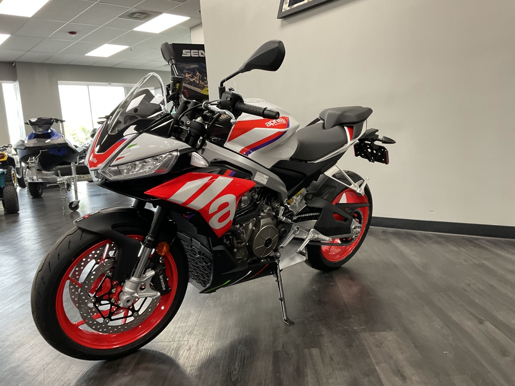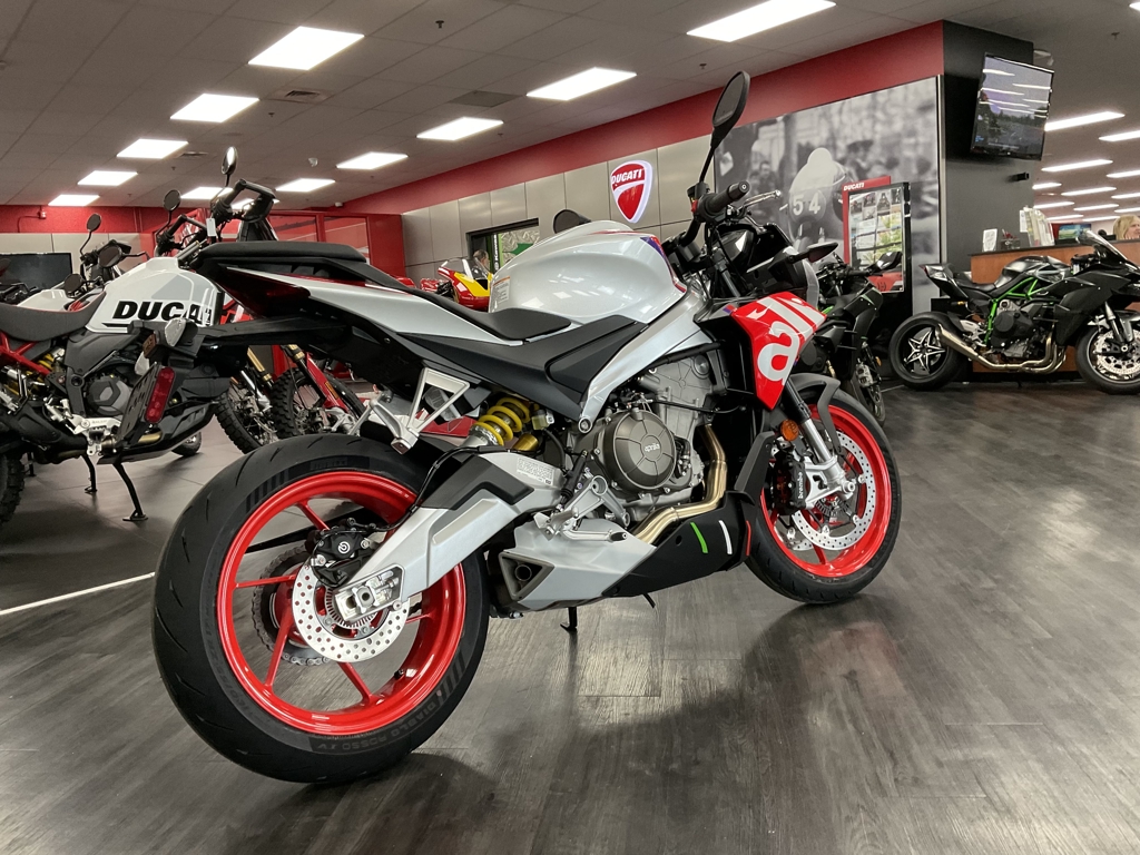 A FACTORY REVOLUTION. The Factory trim transforms the already impressive Tuono 660 into an even more dynamic, lightweight and high-performance bike of unparalleled quality with an incredible power-to-weight ratio. With a brand-new latest generation Aprilia twin cylinder at its heart, it delivers extraordinary levels of fun, adrenalin and sheer riding pleasure. NEW LINES Tuono 660 Factory dictates your trajectory with new graphics and red wheels in the Too Fast and Speed White color schemes. YOU SPOKE WE LISTENED Tuono 660 Factory comes standard with the full complete suite of APRC electronic controls equipped with an electronic Ride-by-Wire accelerator and a six-axis inertial platform. The Tuono 660 Factory APRC includes ATC (Aprilia Traction Control), AWC (Aprilia Wheelie Control) adjustable wheelie control system, ACC (Aprilia Cruise Control) to maintain the set speed without acting on the throttle; AQS (Aprilia Quick Shift), the electronic gearbox, for very quick changes without closing the throttle and without using the clutch, also equipped with a downshift function, which allows you to downshift without touching the clutch; AEB (Aprilia Engine Brake), the adjustable engine brake control system during the gas closing phase; AEM (Aprilia Engine Map), different mappings available to change the character and way of delivering engine power. UPGRADED SUSPENSION The Factory variant includes a fully adjustable KYB fork and an oil reservoir-equipped Sachs rear shock. Tuono 660 Factory also features multimap Cornering ABS in line with the IMU, the system, with extremely low weight and dimensions, is capable of optimizing braking and ABS intervention when cornering, thanks to a specific algorithm that constantly monitors various parameters such as the lateral acceleration, the pressure exerted on the front brake lever, the lean, pitch, and yaw angle, modulating the action of the brakes to optimally combine deceleration and stability. PERFORMANCE DESIGN The Factory will adopt the RS 660 single passenger rear seat cowl for a sleeker look. COLOR OPTIONS: "¢ Too Fast "¢ Factory Dark The company reserves the right to make technical and aesthetic changes at any time. Full information on models and accessories is available at www.aprilia.com. Ride carefully, always wearing a helmet and suitable gear. Always comply with the rules of the road and respect the environment. Read the operating and maintenance manual carefully. Always ask for original and approved spare parts in accordance with current legislation. Visit an Official Aprilia Dealership or Authorized Retailer for a secure purchase and guaranteed service support.