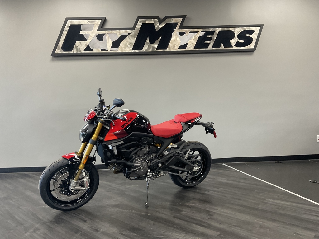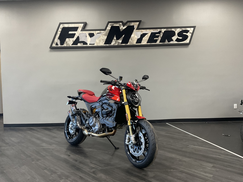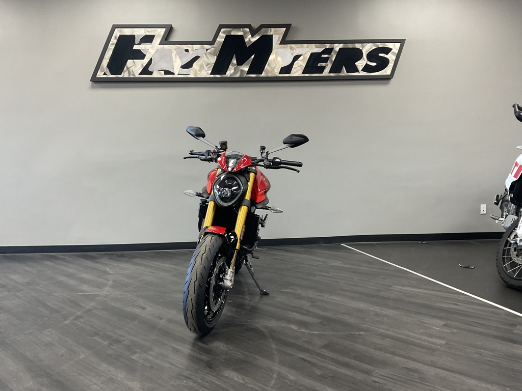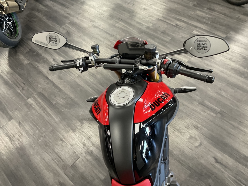 MAD FOR FUN. The Monster range grows with the SP version, designed to enhance fun, thanks to technical equipment perfect for those who love sporty riding and embellish style with the Moto GP-inspired livery. The Monster SP takes the 2022 colors of the official team's Desmosedici GP, mounts the Öhlins NIX30 fork and Termignoni homologated silencer, Brembo Stylema® front calipers and Pirelli Diablo Rosso IV tires. True supersport equipment that will make you fall in love with the new Monster SP. Are you ready for more? ELECTRONICS AT THE TOP OF THE SEGMENT Standard equipment includes ABS Cornering, Ducati Traction Control, Ducati Wheelie Control, all adjustable to different levels of intervention. The sporty character of the Monster is also emphasized by Launch Control, which ensures lightning-fast starts. This top-of-the-line motorcycle equipment allows the Monster to safely express its performance. Sport, Road and Wet Riding Modes allow you to mold the character of the Monster according to your tastes and needs. Everything is easily managed through the handlebar controls and the 4.3-inch color TFT dashboard. DUCATI TRACTION CONTROL Traction control is an intelligent system that acts as a "filter" between the accelerator and the rear tire. The system allows a choice of eight different levels of intervention. The traction control levels are preset for each of the three Riding Modes, but can be customized to suit the rider and road characteristics, as well as for other electronic driving aid systems. LAUNCH CONTROL The Monster SP is equipped with a Launch Control system that enables incredibly efficient starts. The system once "armed" autonomously manages the engine revs (whatever the throttle grip is opened) and leaving the rider with only the task of managing the clutch at the start. A "drag race" proof mode that allows the best possible acceleration. DUCATI WHEELIE CONTROL Wheelie Control allows the motorcycle maximum acceleration by eliminating or limiting wheelie phenomenon. This provides a high level of safety while ensuring the best acceleration performance. Wheelie control can be adjusted to several levels independently of the other controls. DUCATI QUICK SHIFT UP/ DOWN The Ducati Quick Shifer (DQS) up/down is an electronic shift assist system that allows gear engagement without the need to pull the clutch either up or downshifting. This system not only makes sporty riding more fun, but is also a valuable aid in city traffic and on winding roads that require frequent use of the transmission. COLOR OPTION: "¢ Dark Stealth Pricing and specifications are subject to change without notice. See Dealer for details.