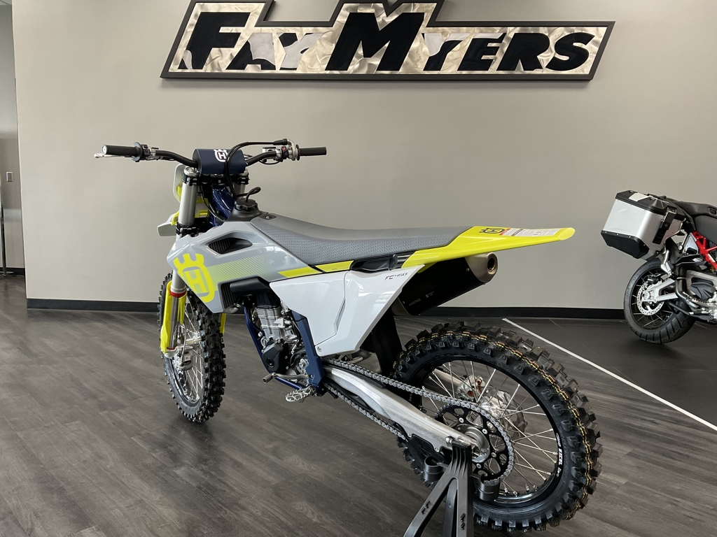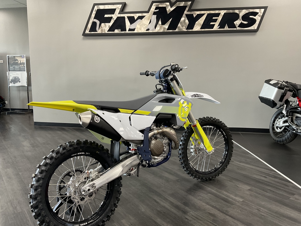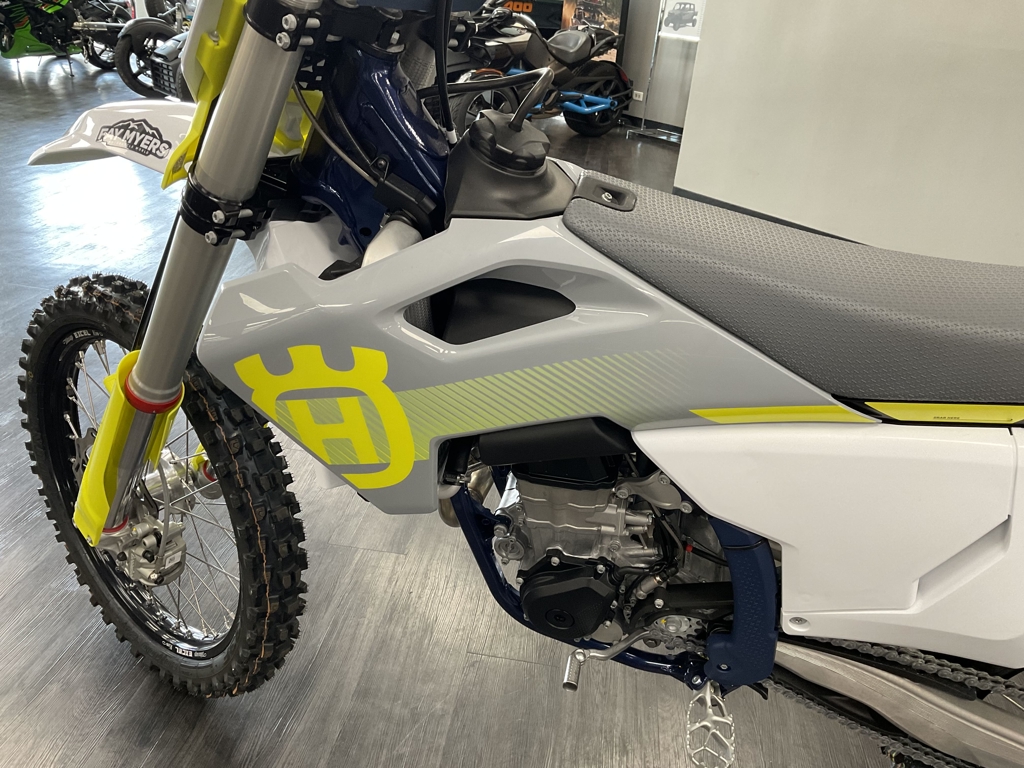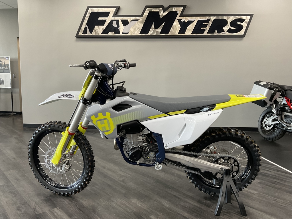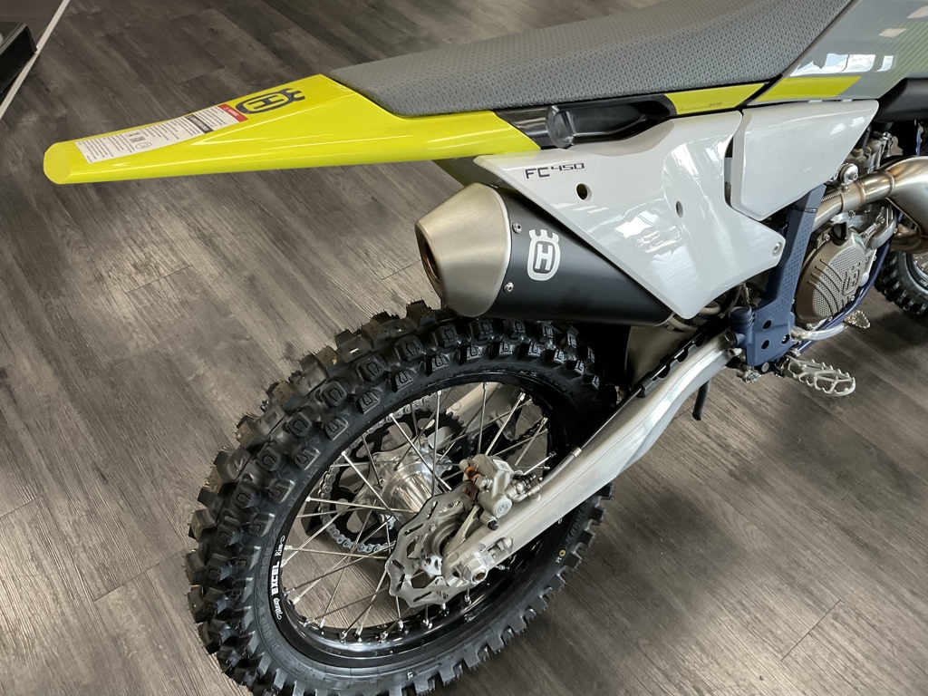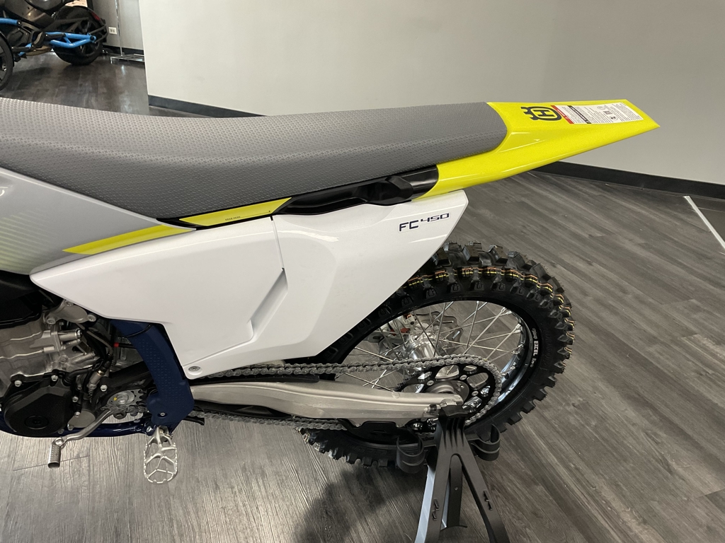 VICTORY IS A CLEAR DECISION The FC 450 continues as the flagship machine in the Husqvarna Motorcycles motocross line-up and delivers class-leading performance. The engine not only produces a broad spread of controllable power but positions the shaft arrangements at the ideal center of gravity to vastly benefit maneuverability. Retaining the advanced electronics and high-quality components throughout, the 2024 FC 450 is finished with ergonomic bodywork adorned with new white, yellow, and grey graphics, inspired by the Swedish heritage of the brand. The FC 450 engine benefits from advance engineering techniques to deliver maximum performance. For 2024 the engine is lighter, weighing just 26. 8 kg, and is tilted 2° backwards to further centralize mass for enhanced handling and significantly improved anti-scrap behavior from the chassis. Servicing of the FC 450 engine is made easier compared to previous models things to the addition of service markers on the engine cases. The proven chromium molybdenum steel frames refined for 2024. A new shock mounting, which is no longer connected to the main tube, significantly improves the anti-scrap behavior of the chassis. With optimized wall thickness in high stress areas improving reliability, the frame continues to offer advanced geometry and flex characteristics aimed at providing unparalleled rider feedback, energy absorption, and exceptional straight lines's ability. The frame is finished off and a premium metallic coding stand protectors super protection ability, and. House for easy installation of the skid plate, which is available as a technical accessory. Clean, Swedish inspired design in ergonomics are tailored to allow riders to perform at their best for extended periods of time. Adapted after countless hours of testing to contact points in surfaces in the writer triangle have been repositioned for 2023 to improve comfort on the motorcycle. A new, flatter see offers on restricted movement with a High grip cover ensuring rider stay firmly in place under hard acceleration. Specifications and pricing are subject to change. Images, where available, are presented as reasonable facsimiles of the offered unit and/or manufacturer stock images. Non-standard options or features may be represented. No guarantee of availability or inclusion of displayed options should be inferred, contact the dealer for more details.