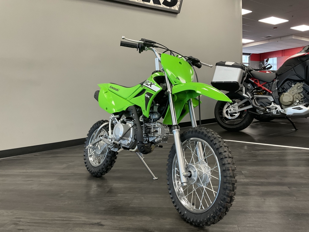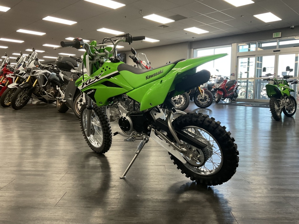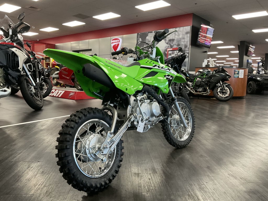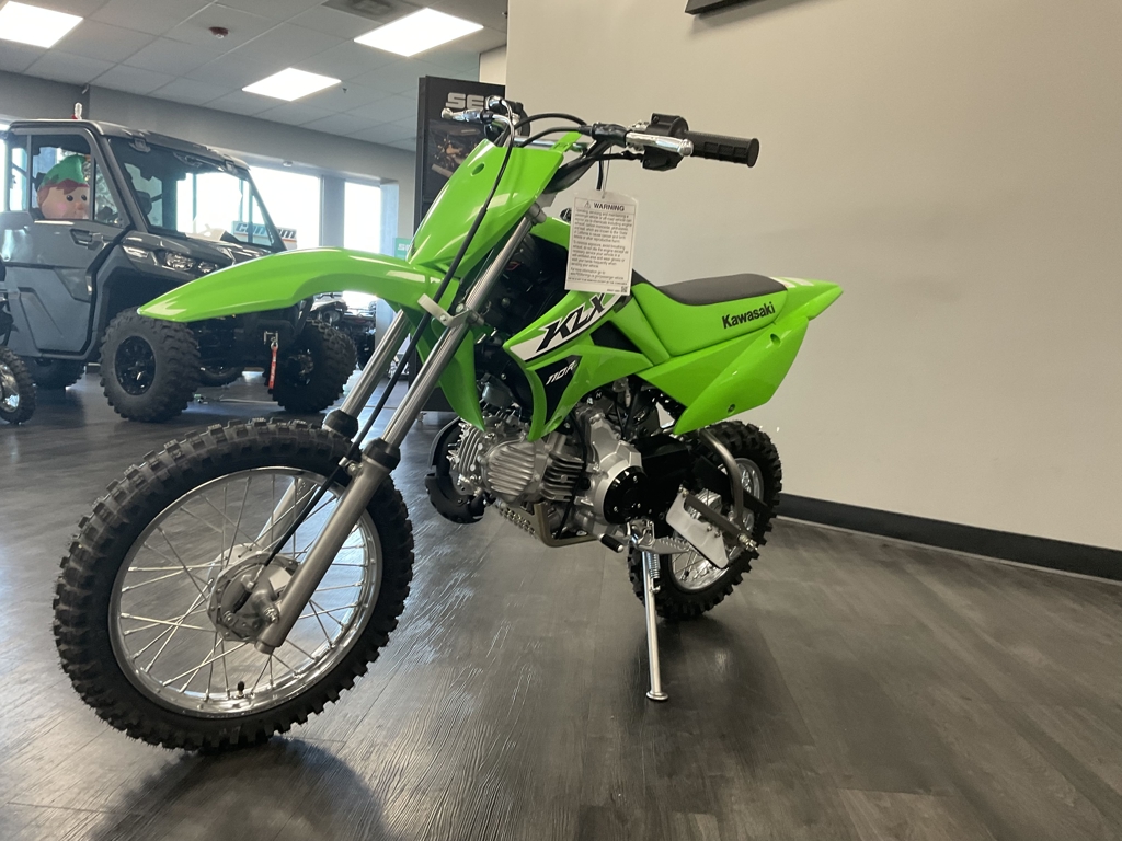 HEIGHTEN THE ENJOYMENT. The 2024 Kawasaki KLX®110R L off-road motorcycle features a playful 112cc four-stroke engine and taller seat height for young riders looking to move up to a taller bike. Whether it's a friendly bike for beginners or the ultimate pitbike for more experienced riders, the KLX®110R and the slightly larger KLX®110R L off-road motorcycles are up for the task - versatile enough to handle fun for any young rider. HIGHLIGHTS: "¢ 112cc AIR-COOLED, 4-STROKE ENGINE "¢ SPORTY RACE-INSPIRED STYLING FUELED FOR FUN KLX®110R motorcycles are powered by a 112cc air-cooled four-stroke engine. The KLX110R features a 4-speed transmission with an automatic clutch while the KLX®110R L offers a manual clutch to learn big bike shifting techniques. TAKE A SEAT Lightweight KLX®110R off-road motorcycles are fun for the whole family to enjoy. The KLX110R features a 26.8-inch seat height and low center of gravity, well-suited for young riders. For taller riders, the KLX®110R L boasts a 28.7-inch seat height and higher ground clearance. START THE FUN WITH A PUSH KLX®110R motorcycles feature easy, reliable starting thanks to an electric start. BUILT FOR FUN IN THE DIRT Whether it's a friendly bike for beginners or a mini moto machine for more experienced riders, the KLX®110R and the slightly larger KLX®110R L off-road motorcycles are up for the task. Experience off-road riding like never before with the KLX110R line. ADDITIONAL VEHICLE FEATURES: "¢ Taller seat height (28.7-inch) and higher ground clearance (10.4-inch) "¢ Sporty styling "¢ Four-speed transmission with manual clutch COLOR OPTIONS: "¢ LIME GREEN "¢ BATTLE GRAY WARRANTY: 6-Months Limited "  Specifications and pricing are subject to change. Dealer sets the actual destination charge, your price may vary. KAWASAKI CARES: Read Owner's Manual and all on-product warnings. Always wear a helmet, eye protection and proper apparel. Never ride under the influence of drugs or alcohol. Adhere to the maintenance schedule in your Owner's Manual. ©2024 Kawasaki Motors Corp., U.S.A.