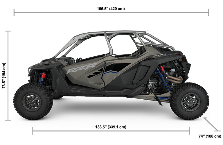 REVOLUTIONARY POWER. INCREDIBLE STRENGTH. You won't approach any off-road challenge the same again. Built with the biggest factory side-by-side engine ever, the RZR Pro R is the choice for the most demanding drivers. HIGHLIGHTS: "¢ DYNAMIX DV with 4 Selectable Ride Modes "¢ RIDE COMMAND Integrated into a 7" Display and Rear Camera "¢ RIDE COMMAND+ Technology "¢ Rockford Fosgate® Stage 2 Audio "¢ FOX X2 Live Valve 3" Shocks "¢ Telescoping Steering Wheel & Button Controls "¢ Aluminum Roof "¢ Retractable 6-pt Harness "¢ Full Doors "¢ Plus PRO R STANDARD FEATURES "¢ 29" Usable Travel "¢ MaxLink Suspension "¢ 32" Tires and Aluminum 5-lug Wheels POWER RZR Pro R is a powerful new breed of 2- or 4-seat side-by-side. It has got the largest factory engine ever dropped into a performance side-by-side and an exceptional capacity to power custom accessories. The saying goes "there's no replacement for displacement." This is the kind of power you've been dreaming of: two liters, four cylinders, 16 valves and 225 horses. All perfectly optimized for desert performance with a naturally aspirated design that's cooler running, balanced and reliable. STRENGTH RZR pioneered the sport of side-by-side performance. No side-by-side has covered more miles of dune and desert terrain and no brand has more history. CONTROL Outrageous power demands exceptional control. RZR Pro R delivers, with the widest stance, longest wheelbase, strongest suspension and four groundbreaking, new ride and handling modes. UNRIVALED COMFORT A RZR Pro R is more than just unmatched capability and unbeatable performance, it's also built with industry-leading technology to enhance your off road adventures. Whether you're behind the wheel or in the passenger seat, RZR Pro R has the roomiest cockpit in the industry with more leg room, more shoulder room and better sightlines. The Rockford Fosgate® high-output sound system fills the cockpit with thumping sound that's perfectly tuned for the off road. COLOR OPTIONS: "¢ Matte Heavy Metal "¢ Matte Onyx Black All pricing, specifications, claims, and information contained on this website are based upon current knowledge available at the time of publication and are subject to change without notice, and Polaris assumes no responsibility for changes in pricing or specifications. Polaris assumes no responsibility for any inaccuracies, opinions, or omissions on this website. ©2024 Polaris Industries Inc.