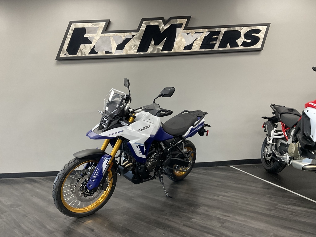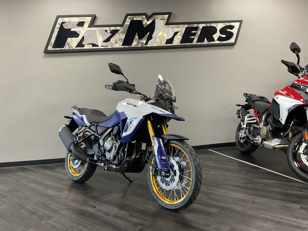 2024 V-STROM 800DE. Advance your Adventure by getting behind the handlebars of the most dirt-worthy V-Strom ever. Suzuki's all-new 2024 V-STROM 800DE brings any-road ability to the mid-size Adventure category. Ride anywhere, propelled by a fully new 776cc parallel-twin engine in a chassis with the most ground clearance of any V-STROM thanks to long, fully adjustable suspension, plus spoke-style wheels led by the 21-inch hoop up front shod with the latest Dunlop ADV tires. The new 776cc DOHC parallel-twin engine employs 270-degree crankshaft timing with the industry-exclusive Suzuki Cross Balancer to deliver a smooth, torque-rich experience. This new machine is ideal for Adventure riders who desire more power than a 650cc engine can deliver and does so in an economical and reliable way. The new rugged steel backbone frame takes advantage of the engine's compact size, resulting in a chassis that is nimble and stable on paved roads or on dirt trails. The long, inverted fork is fully adjustable, as is the rear shock absorber that employs a remote, hand-operated hydraulic spring preload adjuster so tuning for a passenger or cargo takes just seconds. A new, color 5-inch TFT multifunction instrument panel provides the rider access and on-the-fly control over the Suzuki Intelligent Ride System (S.I.R.S.) suite of advanced electronic control systems that include the Suzuki Drive Mode Selector, the Suzuki Traction Control System, and Suzuki's Bi-Directional Quick Shift system. The V-STROM 800DE's S.I.R.S. features a new GRAVEL Traction Control* mode and rear ABS** that can be switch off for off-road riding. Ride all day in comfort and control thanks to a wide, vibration-damping tapered handlebar, strong seat, and wide footpegs. An adjustable windscreen sits above a pair of stacked, compact Mono-focus LED headlights that throw out big-time illumination and the styling is unmistakably V-STROM with the Dakar Rally-style beak that was developed by Suzuki. Don't wait, advance your fun, advance your off-road chops, and advance your peace-of-mind as you Advance your Adventure with your own V-STROM 800DE. ENGINE The 776cc parallel-twin DOHC engine delivers a superb balance of smooth controllable torque-rich power from low RPM and freely revs up to its peak power output. CHASSIS Designed around the new, compact parallel-twin engine and constructed with rugged steel pipe, the V-STROM 800DE's backbone style frame was engineered to provide the strength needed for excellent straight-line stability and nimble handling when negotiating rugged trails or touring at highway speeds. ELECTRICAL The V-STROM 800DE's instrument panel uses a new-generation 5-inch, full-color TFT screen. The brightness adjustable TFT display delivers a wide range of useful information, keeping the rider fully aware of all the bike's systems, settings, and real-time operating status. COLOR OPTIONS: "¢ Pearl Tech White "¢ Champion