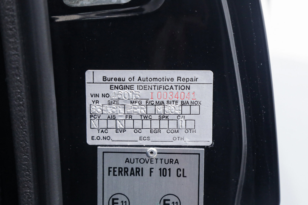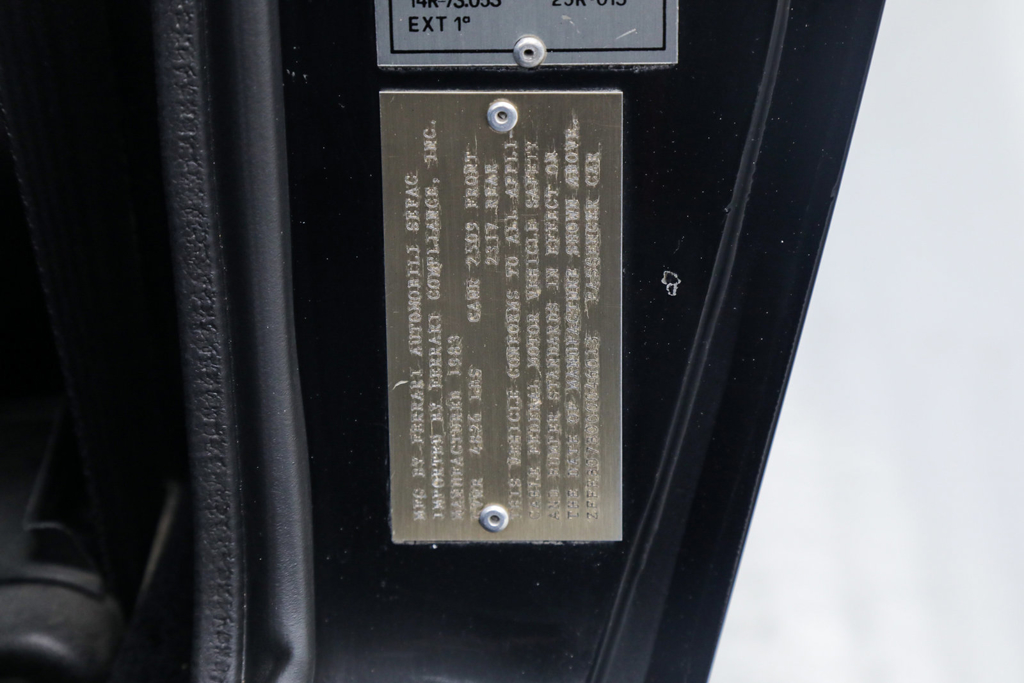 Finished in a classic combination of Nero over Nero leather, this lovely example was imported new to California by Ferrari Compliance, Inc., of Santa Anna. It was enjoyed by several Southern California owners including, more recently, film executive Sanford Panitch, President of Sony Pictures Motion Pictures Group. A refinish in the factory-correct shade of Nero was completed in July 2021 as was a major service including the fuel injection system, painting of the valve covers and a professional replating of many hardware fittings to their correct factory finish. The five Cromodora wheels are fitted with Michelin TRX radials and the 400i includes factory air conditioning and a Blaupunkt AM/FM stereo cassette radio with four speakers. It is accompanied by tools, manuals, and the aforementioned service and refinishing documentation.