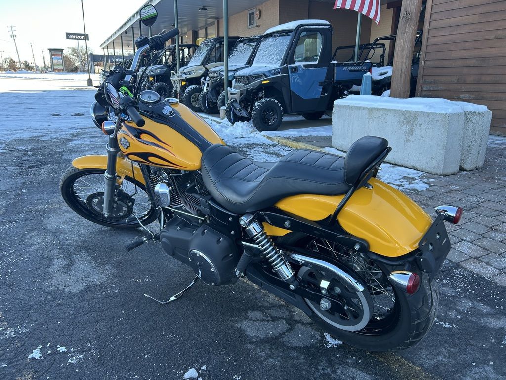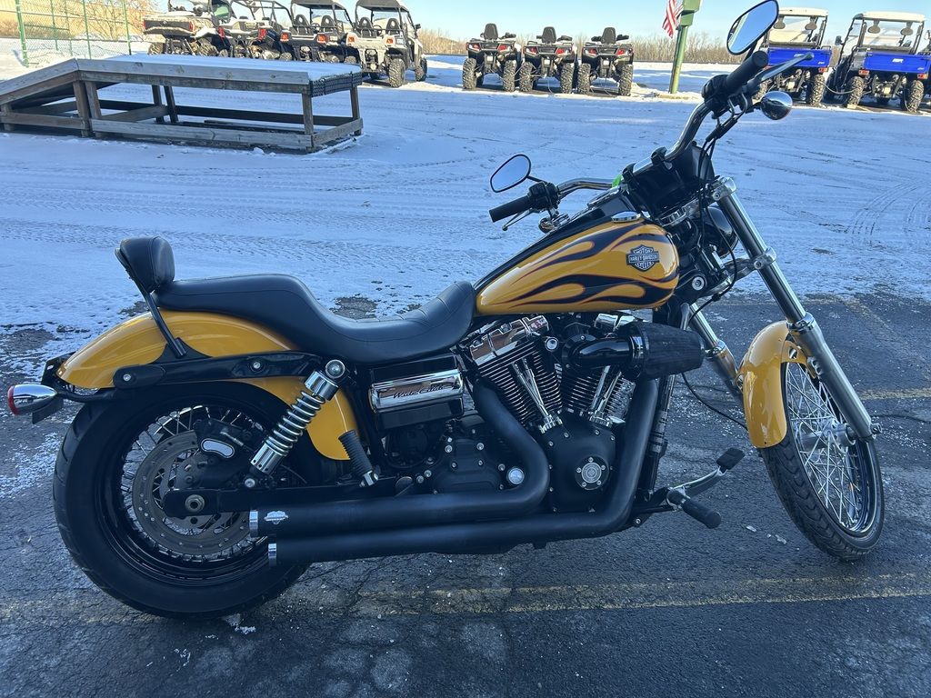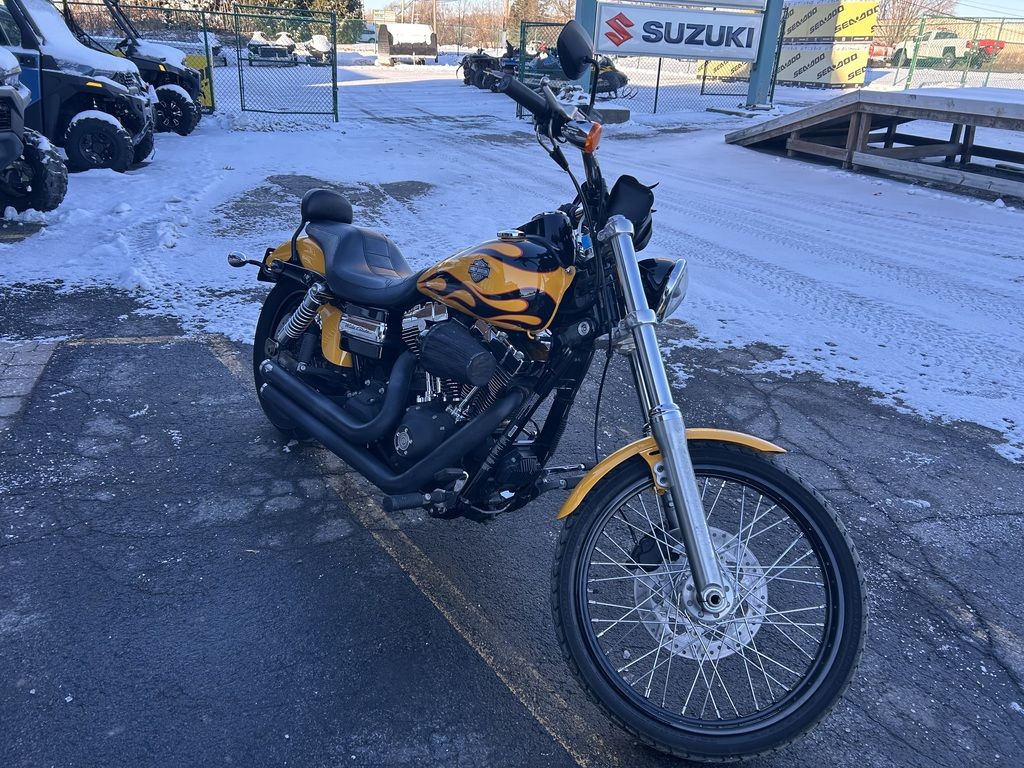 The 2011 Harley-Davidson® Dyna® Wide Glide® FXDWG is full of classic chopper motorcycle style. In front is a long and raked out fork with a 21 inch wheel, giving this model quintessential chopper motorcycle style. And in the back, the Harley® Wide Glide® features a side mounted license plate for added custom chopper motorcycle style. Want even more factory custom style on your chopper motorcycles? This bike also features an optional classic flame design on the fuel tank. Select the flames on the Harley-Davidson® Wide Glide® chopper motorcycle for a factory custom look at an affordable Harley® price.