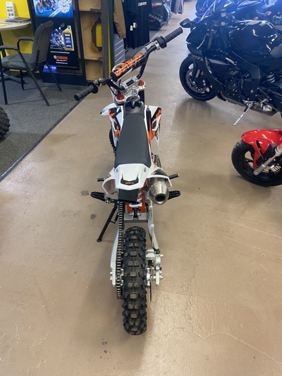 Looking for something a little more aggressive? The TS 125 has inverted forks, large disc brakes with a semi-automatic 4-speed transmission so you don’t need to worry about clutching. 14 and 12 inch wheels, seat height is 29.5 inches and weighs just 143 pounds. Electric and kick start.