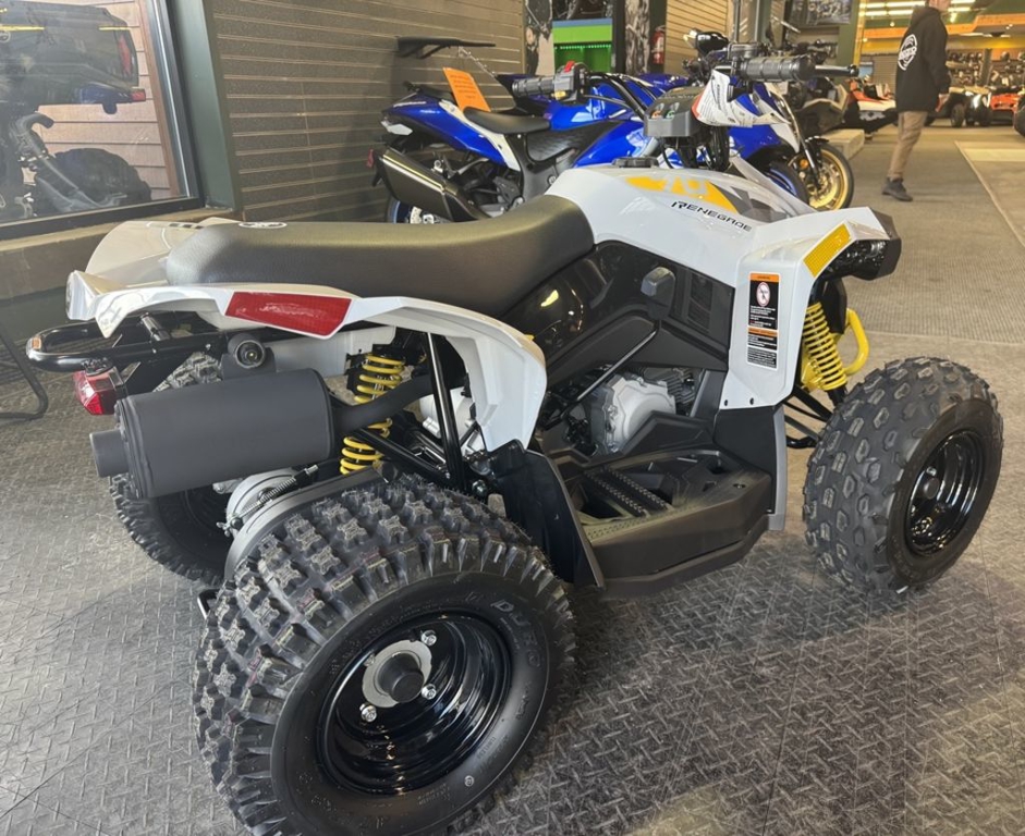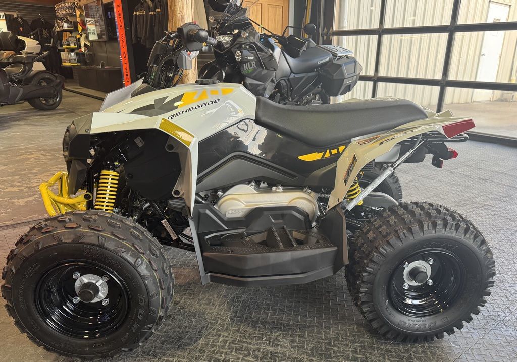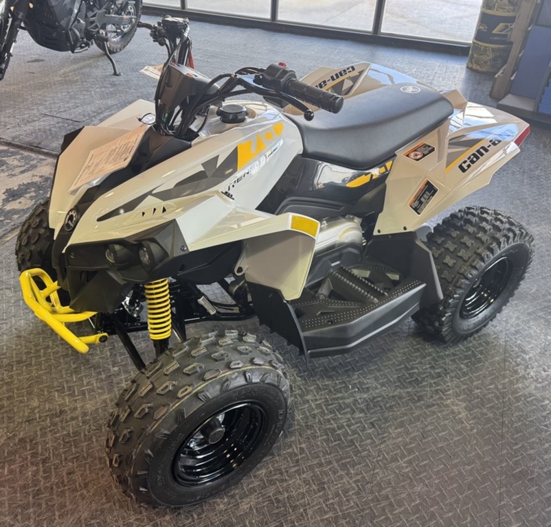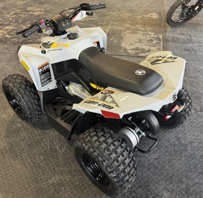 More Control in Your HandsThe Can-Am Renegade EFI is a great way to start riding — but also a safe way! The built-in throttle limiter on this ATV keeps the child’s speed under control to give parents peace of mind.