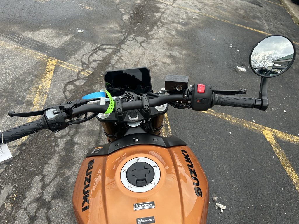 • The GSX-8T debuts handlebar end mirrors that combine a classic look with refined functionality. Positioned at the bar ends, they reduce interference with the rider’s body while contributing to a more open forward field of view and an improved rearward view.