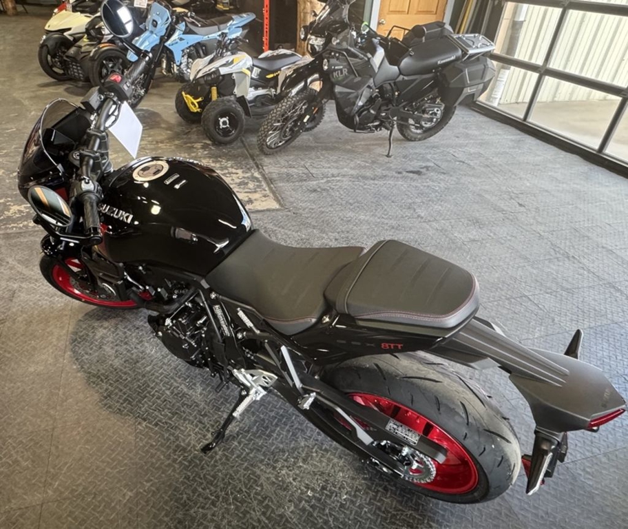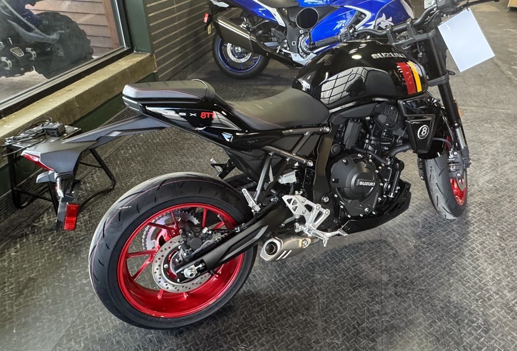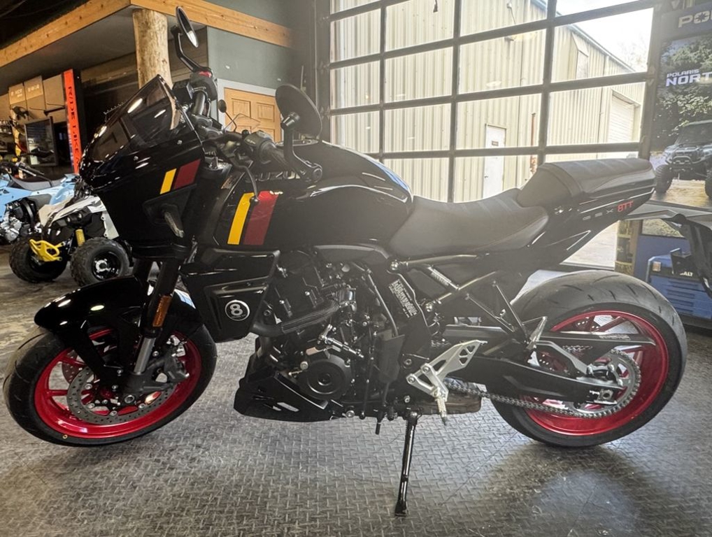 - The GSX-8TT features a stylish seat with stitching on its smooth cover to match its sporty image, complementing the handlebar-mounted quarter fairing and chin spoiler and the overall styling of the motorcycle.