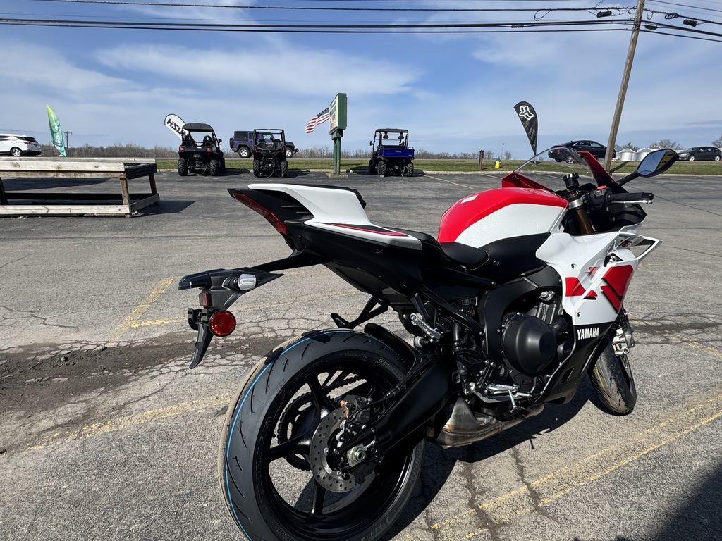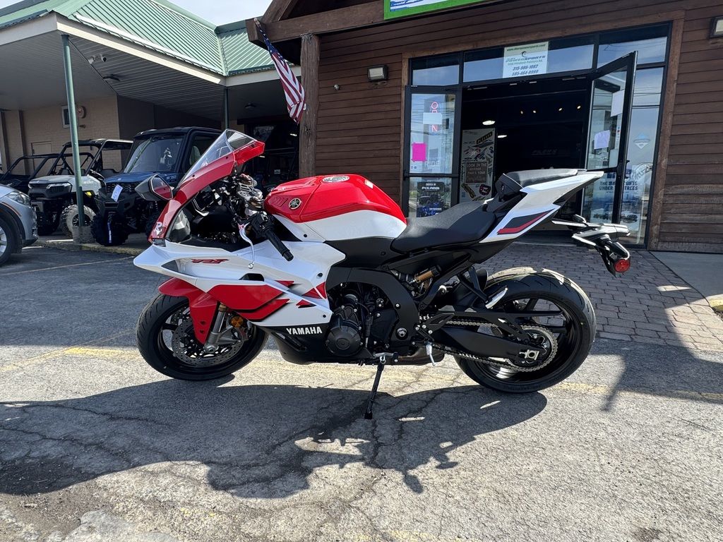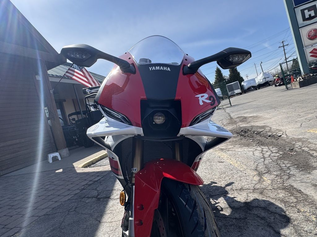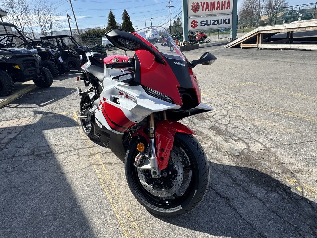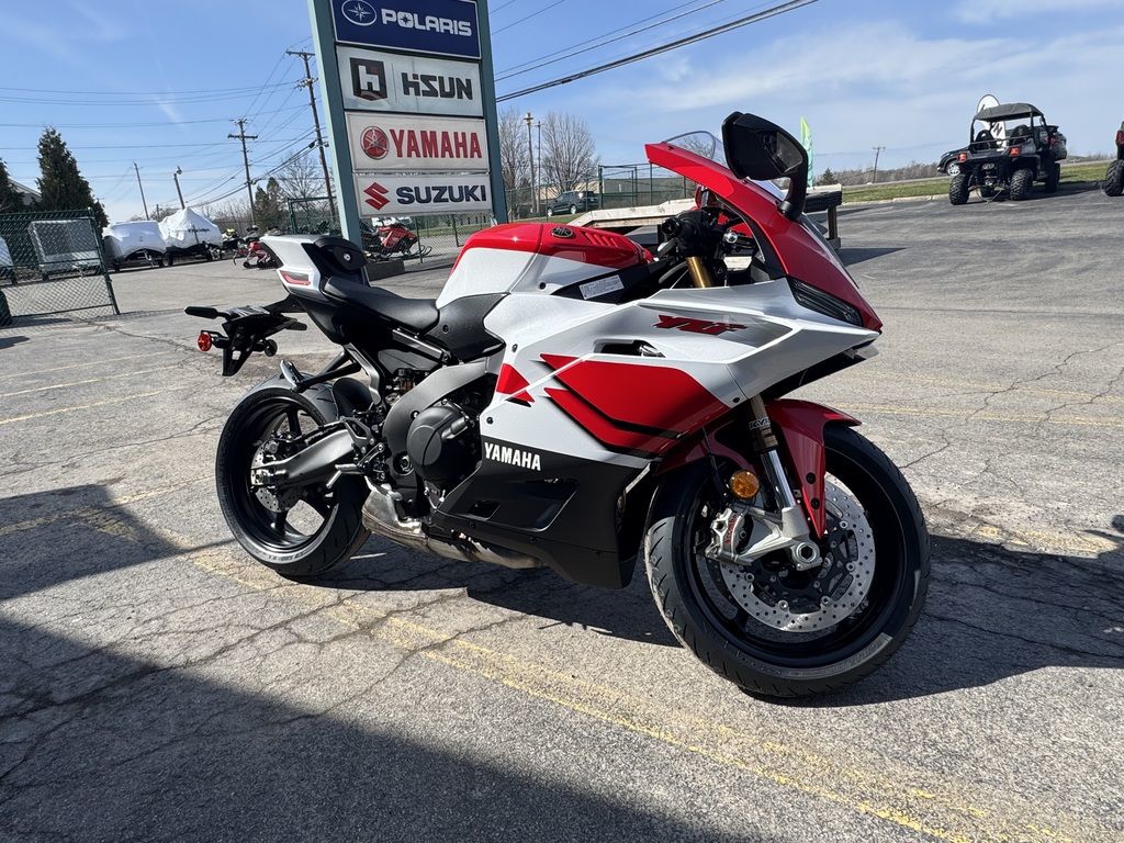 Celebrate seven decades of motorsports excellence with the 2026 YZF-R9 70th Anniversary Edition. Throwback white and red speed block livery, gold Yamaha Tuning Fork emblems, and Anniversary Edition badge combine with the R9's sleek, modern R-Series design to commemorate the 1955 birth of Yamaha Motor Company in standout style.