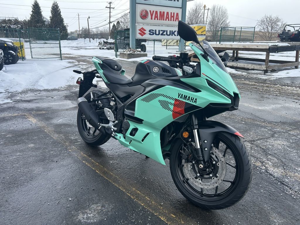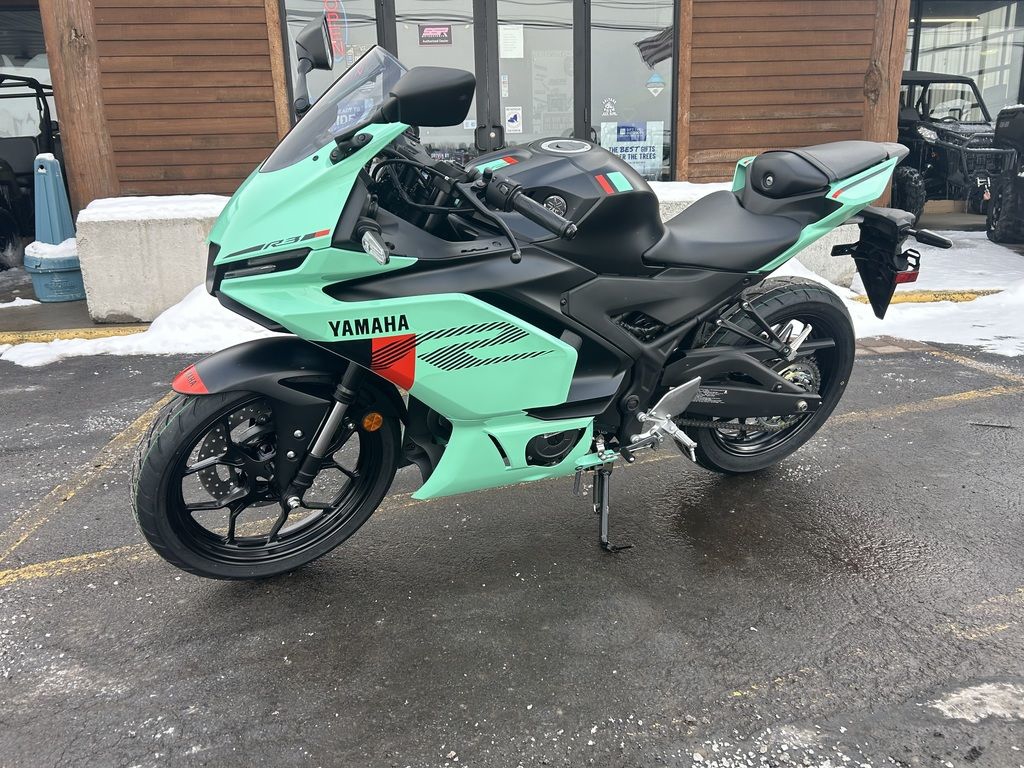 Yamaha's celebrated entry into R World, the YZF-R3 is powered by a high-revving 321cc engine with an emphasis on lightweight, nimble handling and real-world practicality. A perfect choice for everyone from beginning riders to experienced track day enthusiasts, the R3 strikes the right balance of thrilling Supersport performance and everyday comfort in a fun, sporty package that shows off its distinctive R-Series pedigree from every angle.