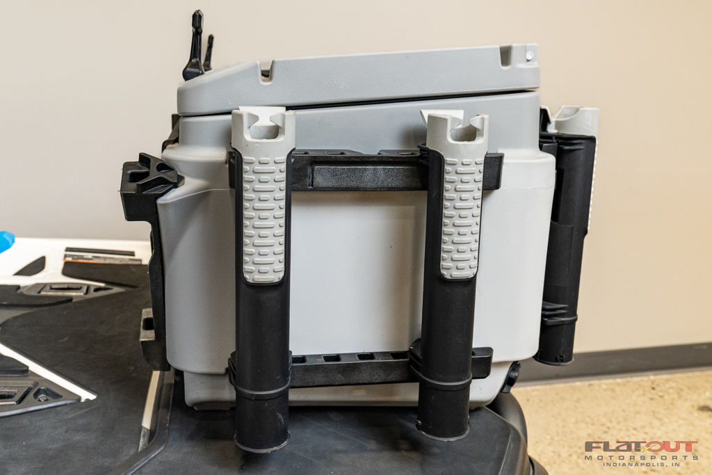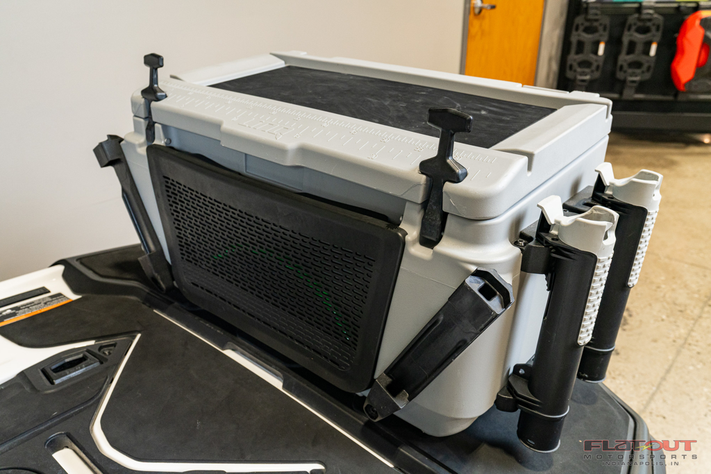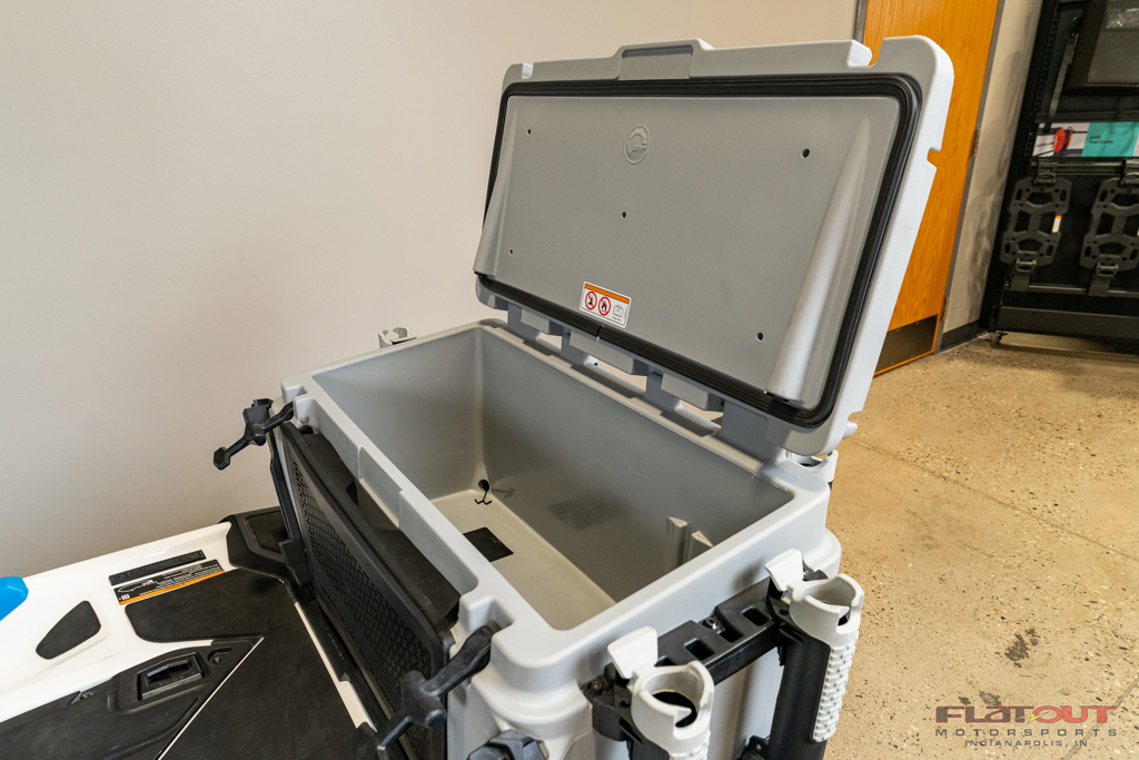 Storage Capacity: Glove Box: 0.8 US gal. (2.9 L); Front Bin: 25.3 US gal. (96 L); Rear Platform (without passenger): 221 lb (100 kg); LinQ™ Fishing Cooler: 13.5 US gal. (51 L); Total: 39.6 US gal. (149.9 L)
