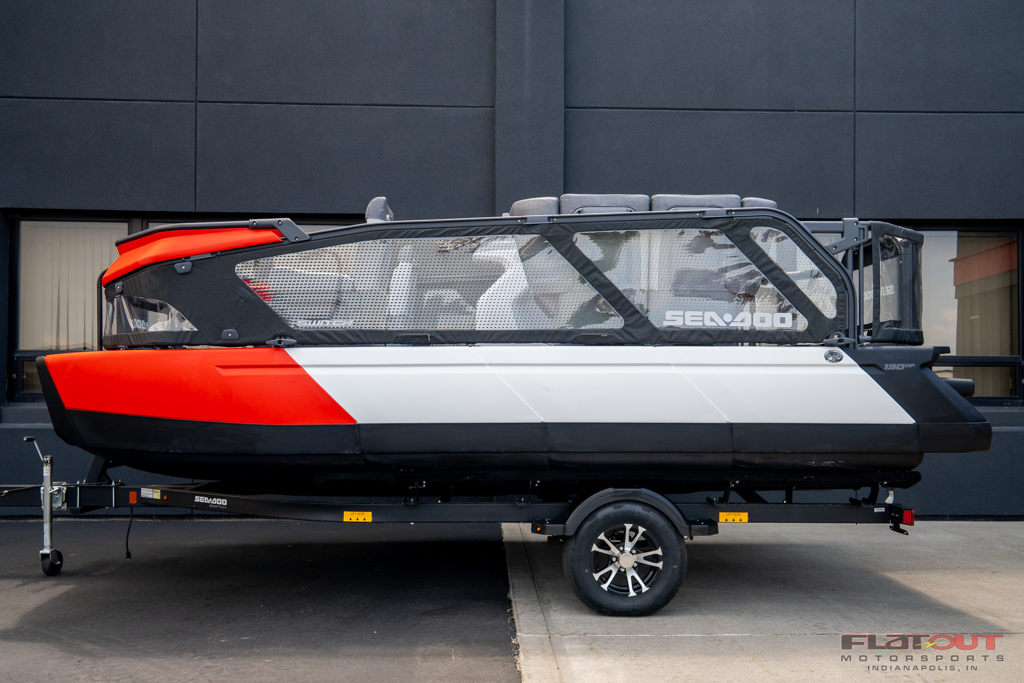 Sea-Doo Switch advertised Price does NOT include, Sea-Doo Freight $2,500.00, Dealer Document Fee $199 for each unit, State Sales Tax (if applicable), Title Fee(s) $30 (if applicable). Advertised sale price INCLUDES all factory incentives (if applicable). Select Sea-Doo Switch are shown with optional accessories, and or painted or galvanized trailers. See Flat Out Motorsports for questions. No exports. CR SCORE: 88, Trailer 5KTBS1818RF116931 GALV, Engine HP: 130 bhp; 97 kW