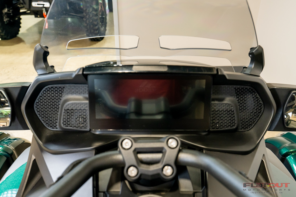Cooling: Liquid, Fuel System: EFI, Front Suspension: Double A-arms with anti-roll bar, Front Brakes: 270 mm discs with Brembo® 4-piston fixed calipers, Front Tire: MC165/55R15 55H, Rear Suspension: Swing arm, Rear Brakes: 270 mm disc, 1-piston floating caliper with integrated parking brake, Rear Tire: MC225/50R15 76H, Dry Weight: 988 lb. (448 kg), Fuel Capacity: 7.1 gal. (27 L), Wheelbase: 67.3 in. (1,709 mm), Seat Height: 26.6 in. (675 mm), Transmission: Semi-Automatic with reverse function, Speedometer: Digital,Tachometer: Digital, Odometer: Digital