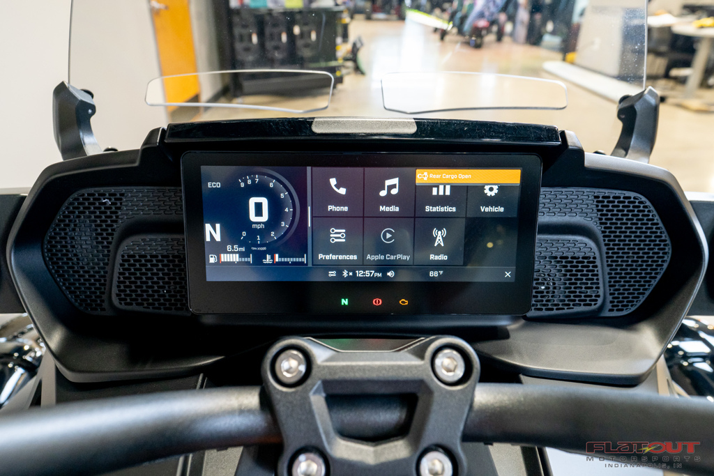 Cooling: Liquid, Fuel System: EFI, Front Suspension: Double A-arms with anti-roll bar, Front Brakes: 270 mm discs with Brembo® 4-piston fixed calipers, Front Tire: MC165/55R15 55H, Rear Suspension: Swing arm, Rear Brakes: 270 mm disc, 1-piston floating caliper with integrated parking brake, Rear Tire: MC225/50R15 76H, Dry Weight: 988 lb. (448 kg), Fuel Capacity: 7.1 gal. (27 L), Wheelbase: 67.3 in. (1,709 mm), Seat Height: 26.6 in. (675 mm), Transmission: Semi-Automatic with reverse function, Speedometer: Digital,Tachometer: Digital, Odometer: Digital