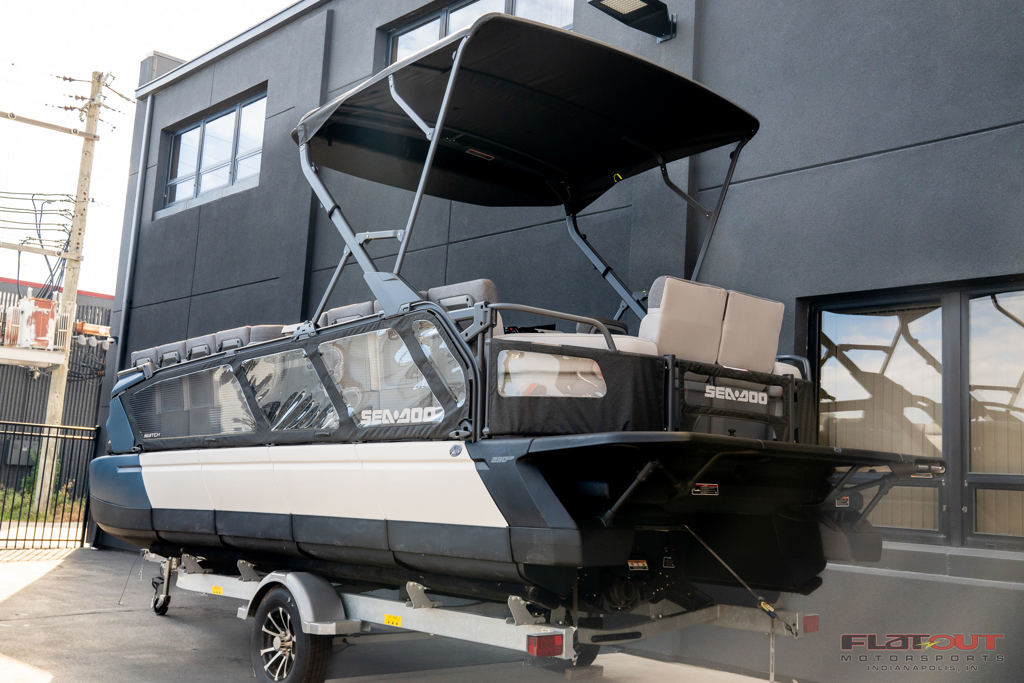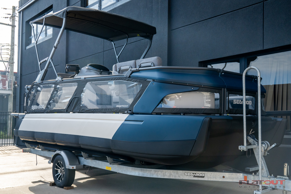 Sea-Doo Switch advertised Price does NOT include, Sea-Doo Freight $2,500.00, Dealer Document Fee $199 for each unit, State Sales Tax (if applicable), Title Fee(s) $30 (if applicable). Advertised sale price INCLUDES all factory incentives (if applicable). Select Sea-Doo Switch are shown with optional accessories, and or painted or galvanized trailers. See Flat Out Motorsports for questions. No exports.