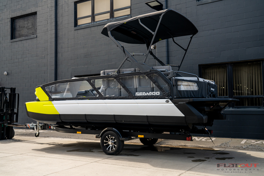 Sea-Doo Switch advertised Price does NOT include, Sea-Doo Freight $2,500.00, Dealer Document Fee $199 for each unit, State Sales Tax (if applicable), Title Fee(s) $30 (if applicable). Advertised sale price INCLUDES all factory incentives (if applicable). Select Sea-Doo Switch are shown with optional accessories, and or painted or galvanized trailers. See Flat Out Motorsports for questions. No exports. CR SCORE: 89, Trailer 5KTBS2218RF312625 GALV. Engine HP: 230 bhp; 169 kW