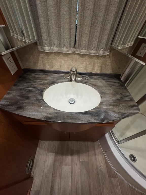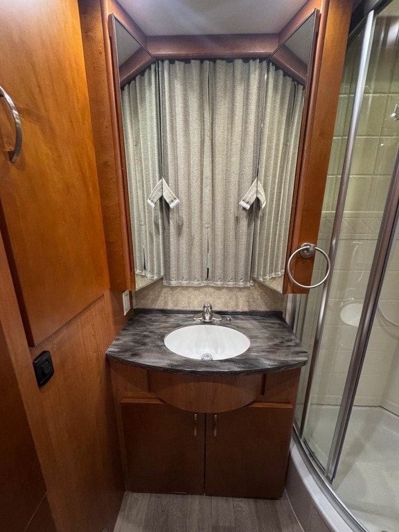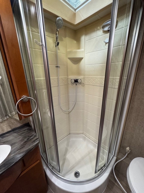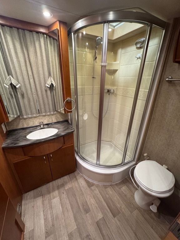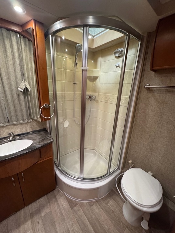 • Large Corner Shower w/Curved Glass Doors and Skylight