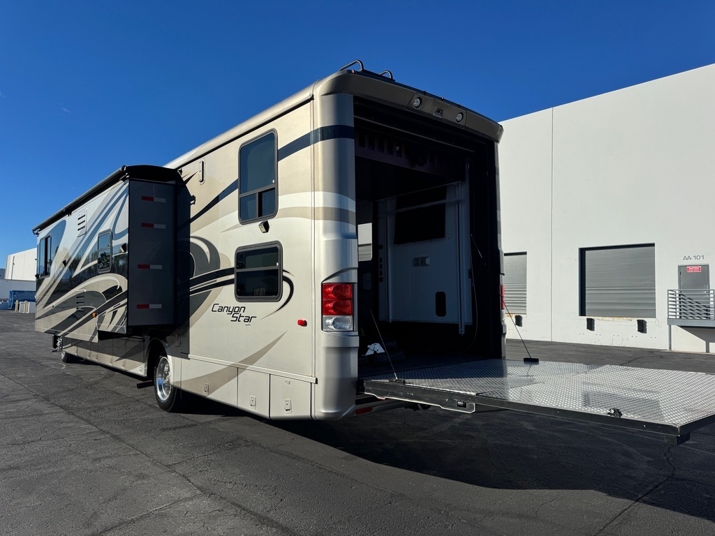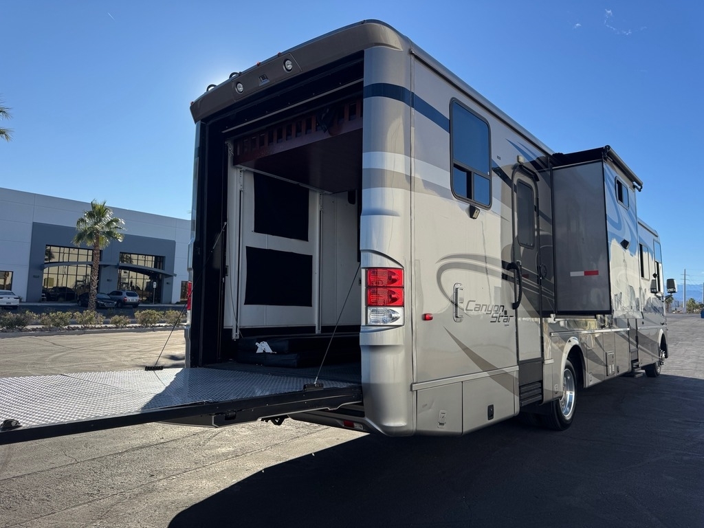 2014 Newmar Canyon Star 3921 Class A toy-hauler motorhome on Ford F-53 26,000 lb. Chassis with 43,720 miles in beautiful condition.