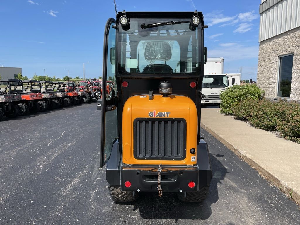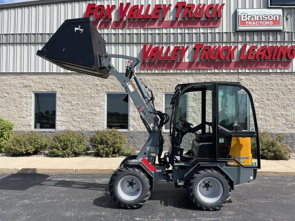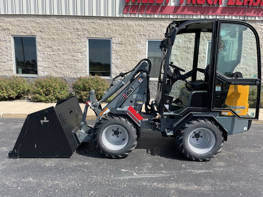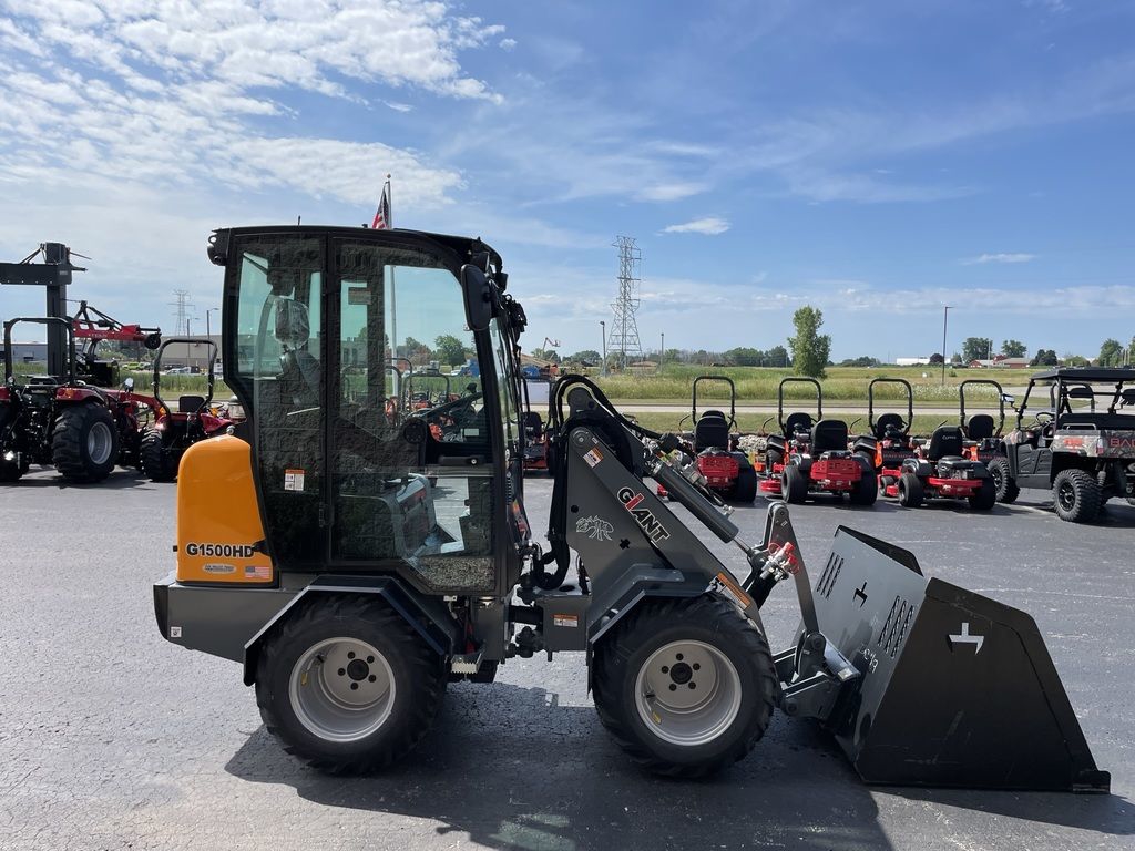 The Giant G1500 is a compact and versatile all-round work horse. The Giant G1500 compact wheel loader can be equipped with a full cab with heat for operator comfort. A wide tire selection, optional traffic lights and additional hydraulic options make this machine a great fit for snow removal purposes, landscaping & tree work, construction or farming. The G1500 comes with either a standard boom or an X-Tra boom configuration that offers more visibility and a higher lift capacity. This machine comes with a powerful 26 HP Kubota 3 cylinder diesel engine. A foldable ROPS is available for work in low clearance areas. This machine comes standard with a universal compact SSL plate and hydraulic quick attach.