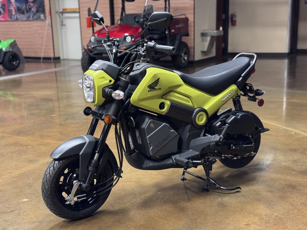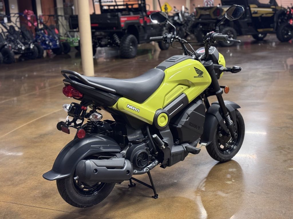 What makes the new Honda Navi so much fun? How about this: First, it’s easy to ride, thanks to its one-speed, no-shift automatic CVT transmission. That helps make it easy to learn on too, even if you’ve never ridden a motorcycle before. Because it’s small, it’s easy to park. Some spectacular fuel efficiency makes it easy on your wallet when it comes time to fill the tank. A reliable Honda engine makes maintenance easy too—because it hardly needs any. And best of all, with its super-low price, the new Honda Navi is easy to own. So check out the mini machine that maximizes your fun—the new Honda Navi. Don’t just ride—Navi-gate your world.