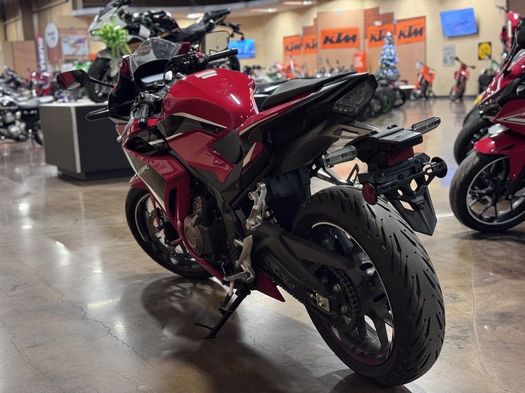 STYLEThe CBR500R’s aggressive styling comes with two great color options (Grand Prix Red and Sword Silver Metallic), that keep it right at the front of the pack in terms of eye-appeal. The aerodynamic bodywork also provides significant advantages in air management for added rider comfort, along with a low drag coefficient and effective cooling.
