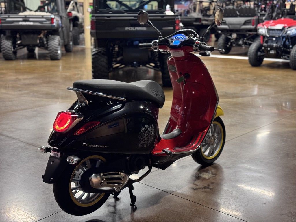 The Vespa Primavera takes on the colors of the most famous Disney character in the world with yellow wheels recalling his shoes and the black side mirrors a nod to his distinctive round ears. Completing the look of this unique edition is a body with red and black details.