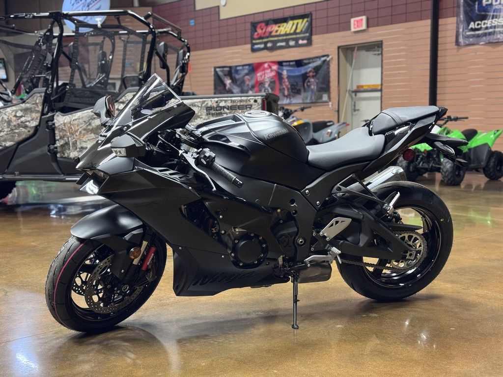 The 2025 Kawasaki Ninja ZX-10R is a race-bred supersport motorcycle powered by a 998 cc inline four-cylinder engine that delivers around 196 horsepower and 83.9 lb-ft of torque. It features an aluminum twin-spar frame, Showa Balance Free suspension, and aerodynamic bodywork with integrated winglets designed for high-speed stability. Advanced electronics include a six-axis IMU with cornering management, traction control, launch control, engine-brake control, and a quick shifter for seamless gear changes. A full-color TFT display with smartphone connectivity adds modern functionality, while Brembo brakes and refined ergonomics make the ZX-10R a formidable machine both on the track and the street.