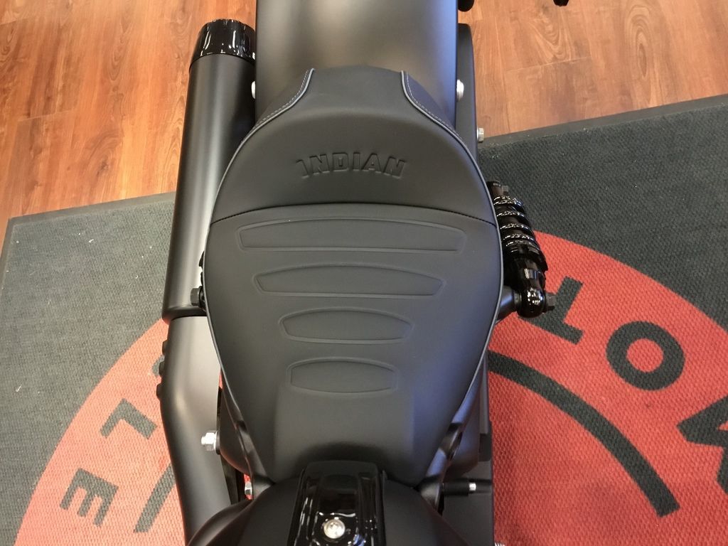 The contour lines on the rear fender seamlessly connect with the modern and dynamic Scout gas tank, creating a unified and premium blacked out aesthetic.