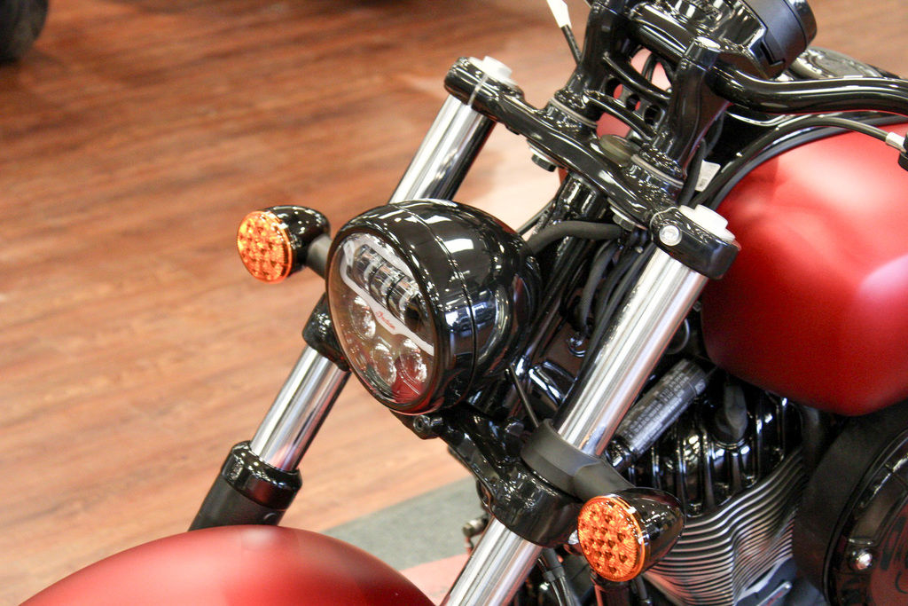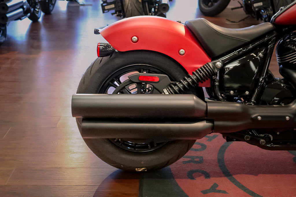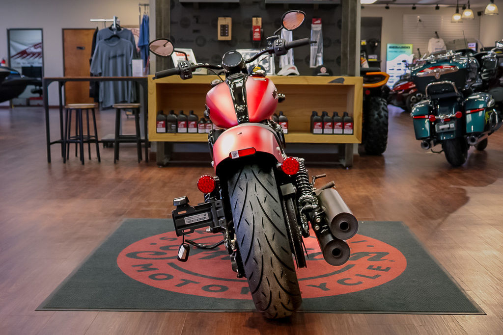 Loaded with attitude and blacked-out premium gloss black finishes with bobbed fenders. A welded steel tube frame, large headlight bucket with nacelle, and covered forks and rear shocks give a nod to traditional bobber style and deliver a visually striking experience.