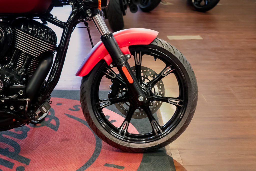 A low solo seat gives you a commanding feel, while the forward pegs and mini ape bars put your feet forward and your fists in the wind, offering you an authoritative riding position.