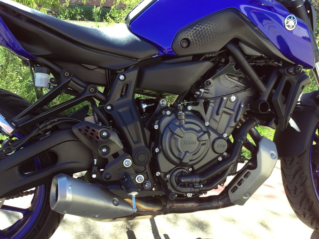 ENGINEThe MT-07 is powered by a 689cc liquid-cooled, inline twin-cylinder, DOHC engine with fuel injection, designed for maximum enjoyment in real-world riding conditions. Its linear torque delivery provides strong low- to mid-range performance while retaining responsive high-RPM power. Updates to the intake air duct, 2-into-1 exhaust system, catalytic converter placement, and optimized ECU mapping improve throttle response and smoothness. Additional refinements include new valve seats for enhanced durability, improved gearshift feel from updated dog gear angles, and overall engine packaging that ensures both performance and reliability.