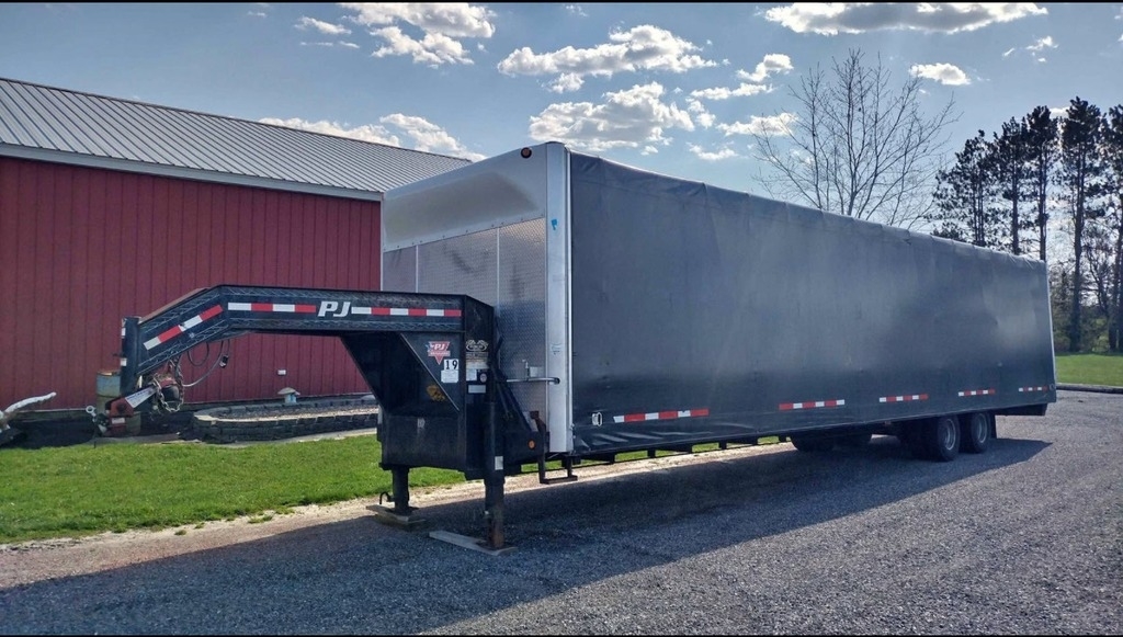 2017 PJ Trailers 40' Flatbed Trailer with Chameleon Enclosed Sliding Tarp System