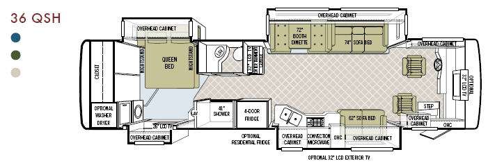 Quad Slide Phaeton Class A with Queen Bed Slide w/Nightstands, 26" LCD TV w/Overhead Cabinet Slide, Closet, Opt. Washer/Dryer, Private Toilet Area w/Lav., 41" Shower, 4-Door Refrigerator, Booth Dinette or Opt. Free Standing Dinette & Sofa Bed or Opt. Euro Chair Recliner w/Computer/End Table Slideout, Opt. TV Above Cab Area, Sofa Bed/2 Burner Range w/Microwave & Double Kitchen Sink Slide, Opt. 32" Exterior LCD TV and Much More.