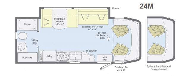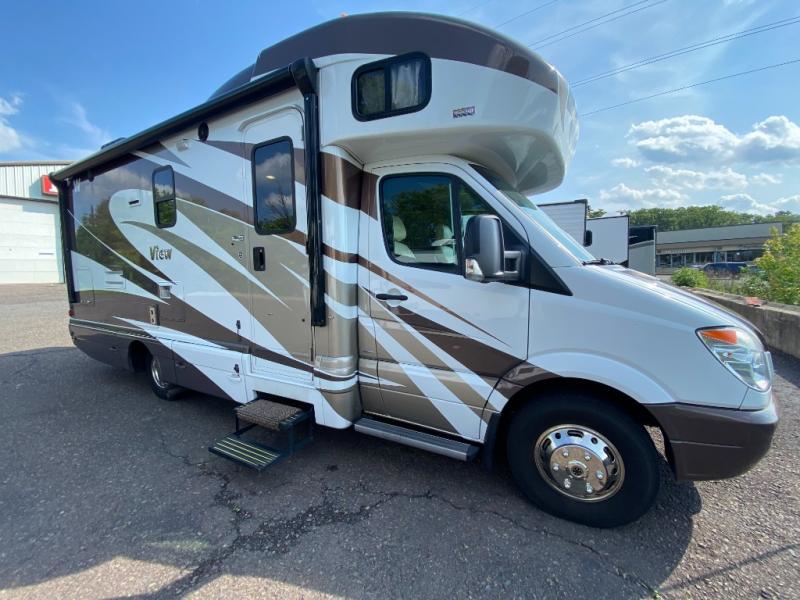 Winnebago View Class C Diesel Coach w/Rear Full Bath Including: Shower, Toilet, Sink w/Overhead & Wardrobe, Sliding Door, Pantry, Refrig., BenchMark Dinette & Comfort Sofa/Sleeper Slideout, Pedestal Table, Front Overhead 49" x 75" Bed, 26" LCD TV, Dbl. Kitchen Sink, 2 Burner Cooktop, and Much More! Available Options May Include: Front Overhead Storage Cabinet.