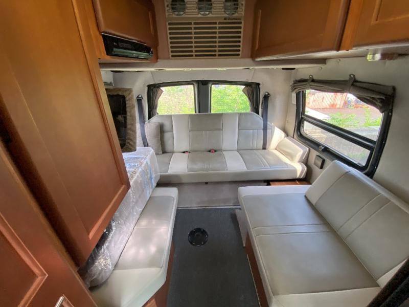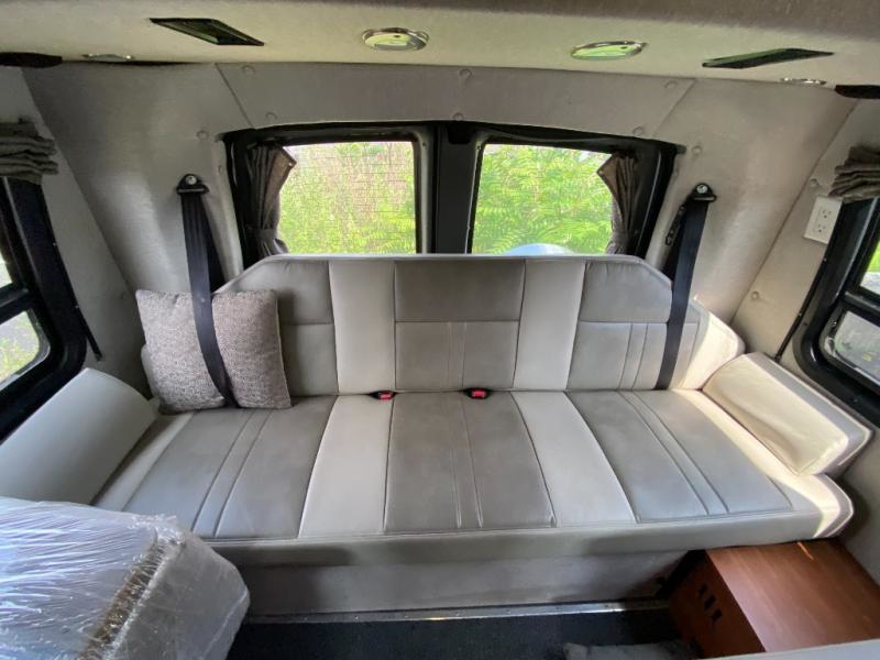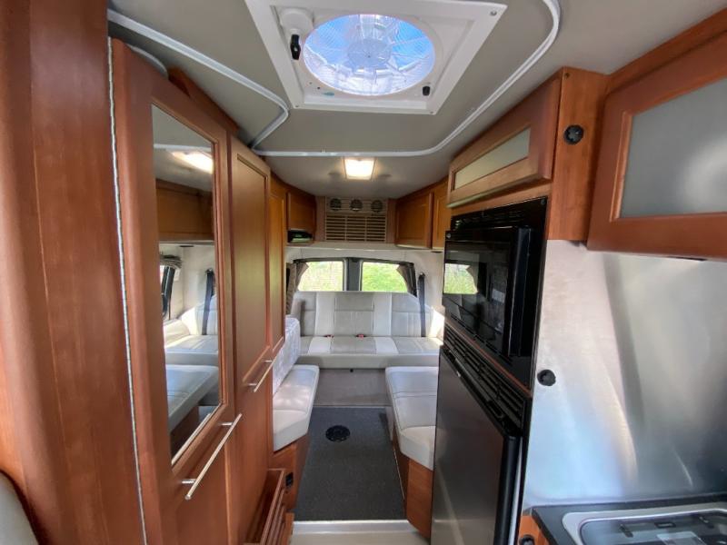 The Roadtrek 210-Popular Class B motor home features a dinette or optional power sofa and two bench seat dinette, both converting to two twin size beds or a king size bed. The passenger chairs can be converted to an additional bed.