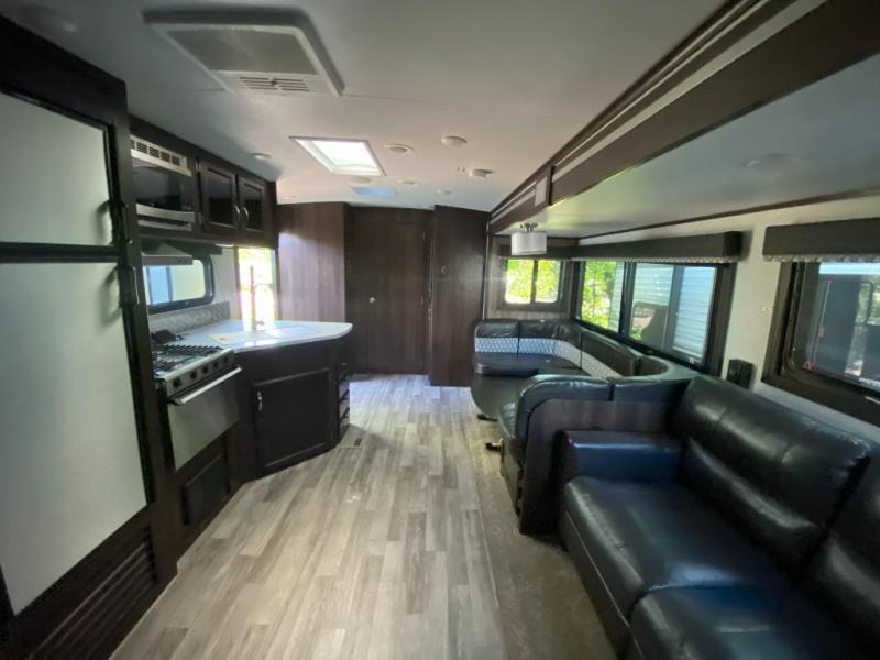 Electric tongue jack, power awning, and outdoor kitchen – ready for any adventure!