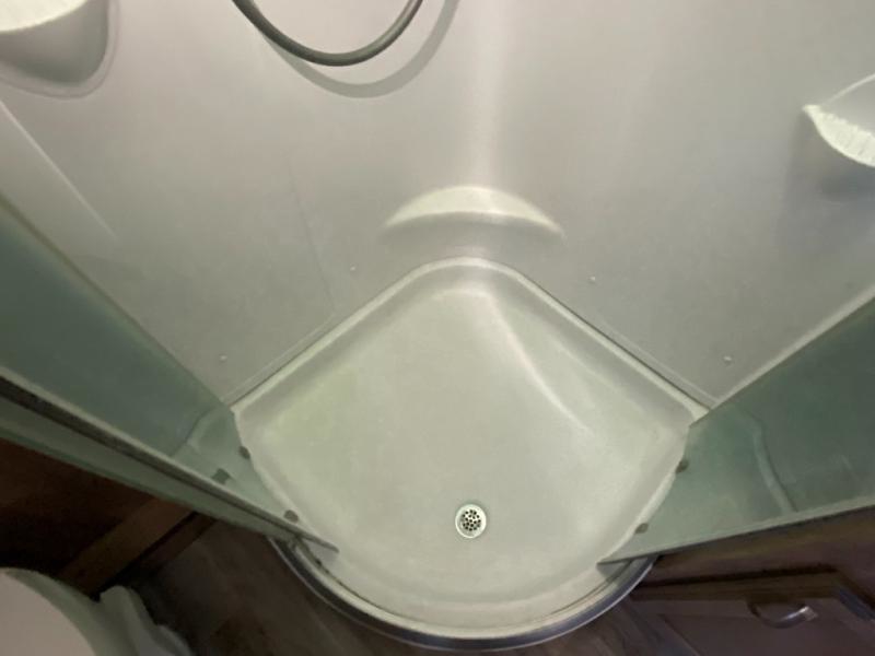 Spacious rear bathroom with a full-size shower and plenty of storage