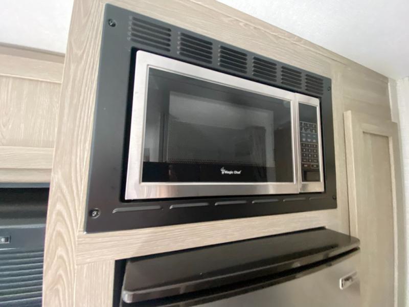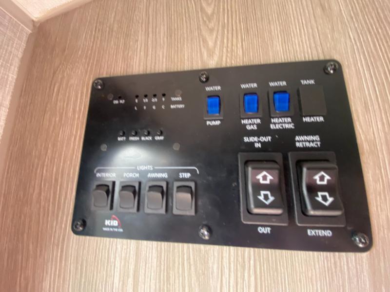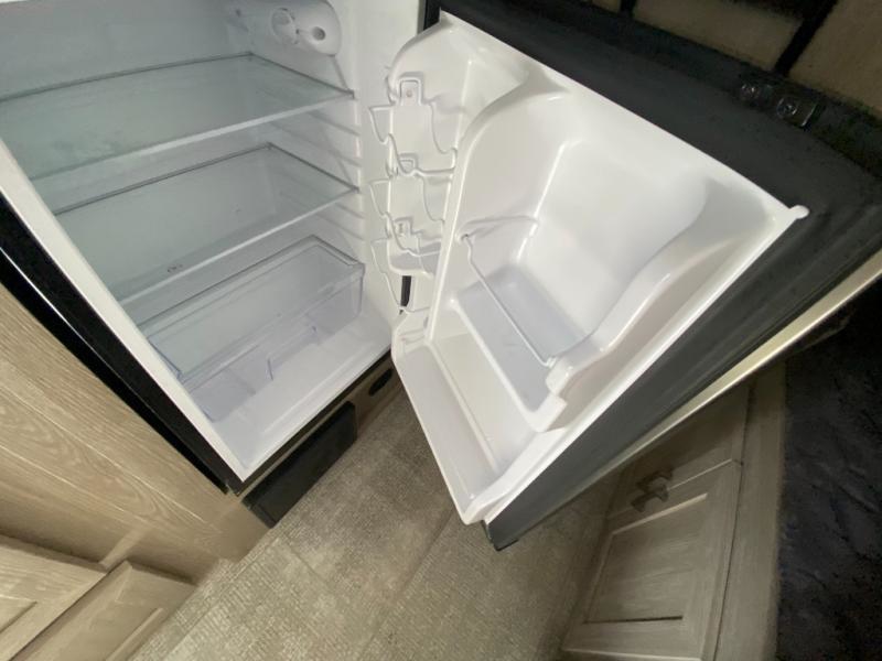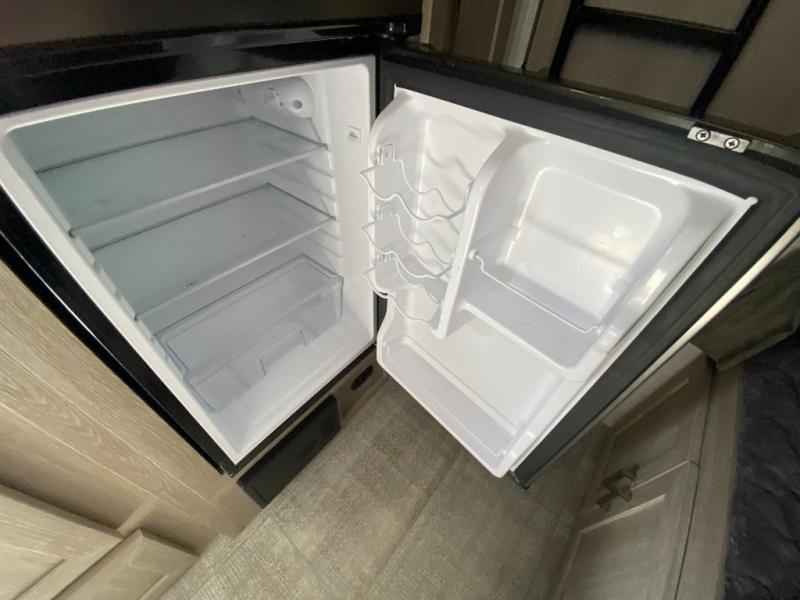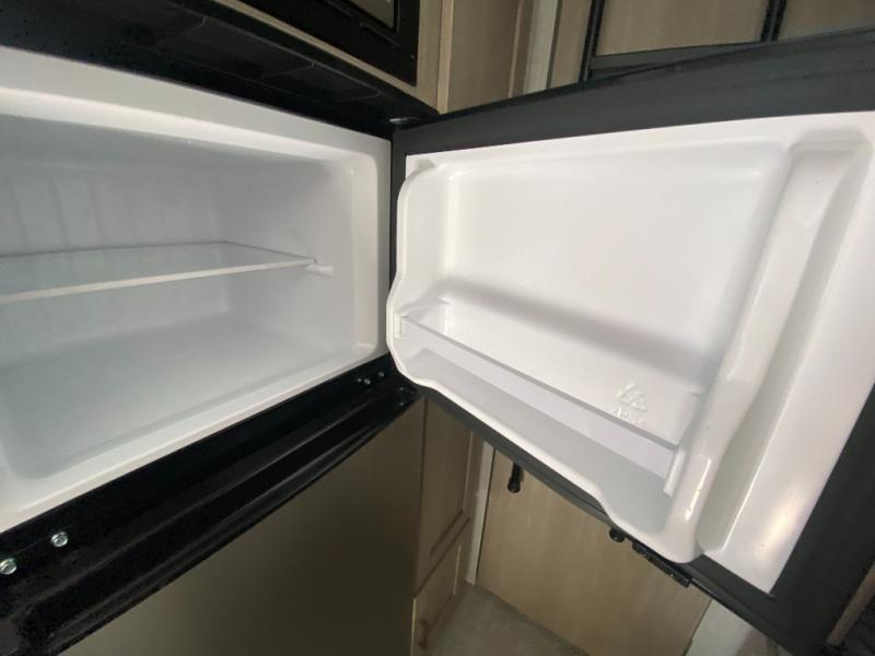 The kids will love sleeping on the bunk beds in this travel trailer! The bottom bunk can even fold-up and the rear corner bathroom is right next to them for a convenient trip to the bathroom at night. Everyone can gather together for meals or games at the 44" booth dinette slide and it can even transform into an extra sleeping space. Grab a snack from the kitchen pantry and a chair from the front exterior storage area to relax underneath the 14' power awning. There is also an exterior bike door for you to put your bikes or other camping accessories in, and a rear ladder for you to access the roof!