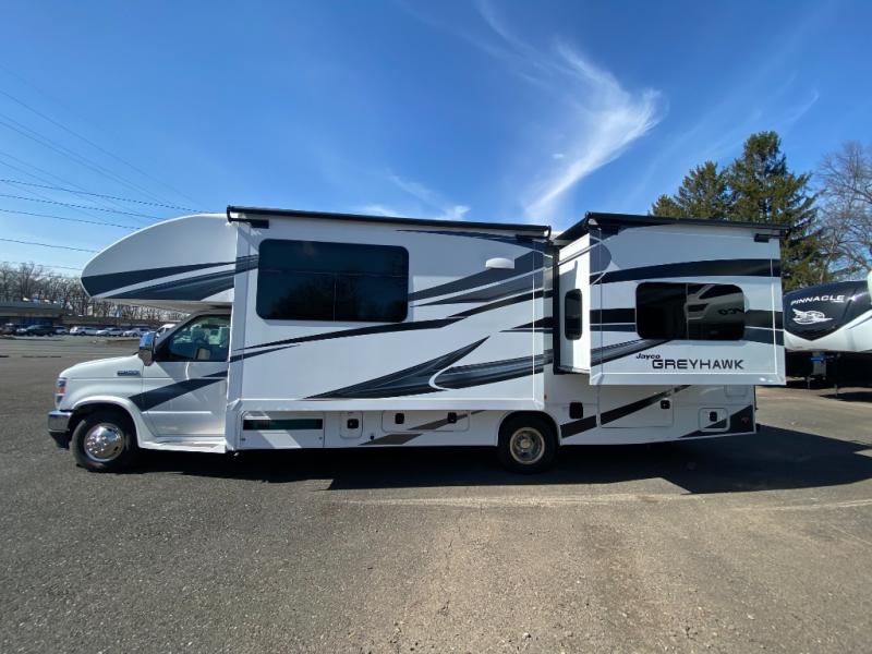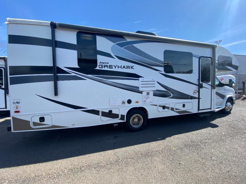 Discover the perfect blend of comfort and convenience with this Used 2022 Jayco Greyhawk 27U! This Class C motorhome offers a spacious interior with a large slide-out, a well-equipped kitchen, and a cozy sleeping area for the whole family. Built on a Ford E-450 chassis, it provides a smooth, reliable ride while featuring modern amenities and quality construction.