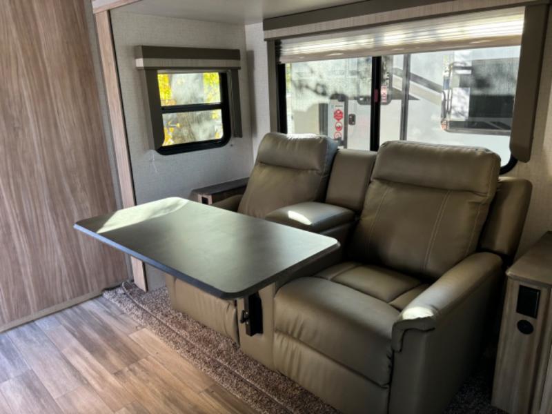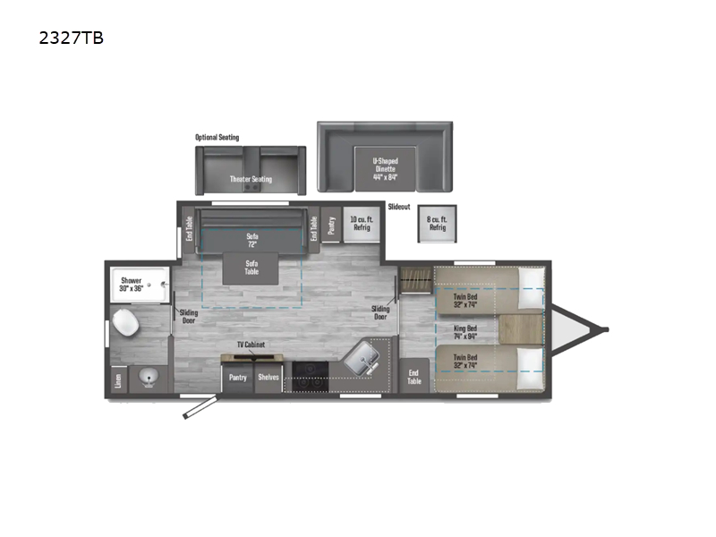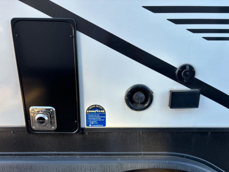 This unit includes Adventure Package, Convenience Package, Versatility Package, 30# LP tanks, Goodyear tires, 8 cu. ft. gas/electric refer & Theater seating.