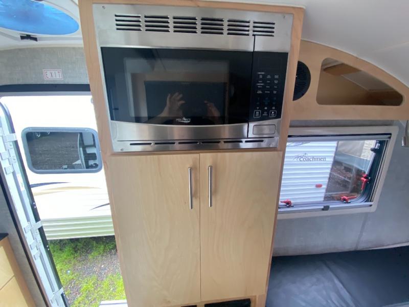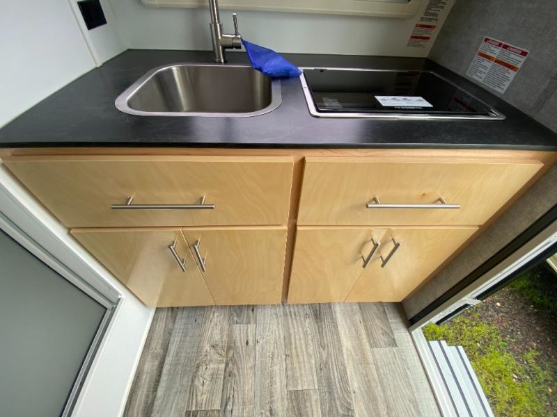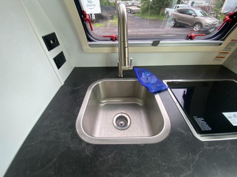 This Little Guy teardrop trailer is designed to deliver the maximum amount of fun in a compact package! It features the same layout as the standard Mini MAX model, but includes a larger 6 cu. ft. refrigerator, a pass-through storage, and a shower with a sink! This trailer can easily be towed by a small SUV or well-equipped crossover, and it is a tough trailer that offers 15" premium tires, Azdel composite sidewalls, insulated dual-pane windows, an exterior entertainment center, and a friction-hinge entry door. Despite its compact size, this trailer still offers you a spacious interior living space with its 6' 1" interior height. You can even tack on an optional rear vertical stargazer window which allows you to bring more of the outdoors inside. This model has a dry weight ranging from 2,474-2,502 lbs. and a GVWR ranging from 3,750-3,850 lbs.