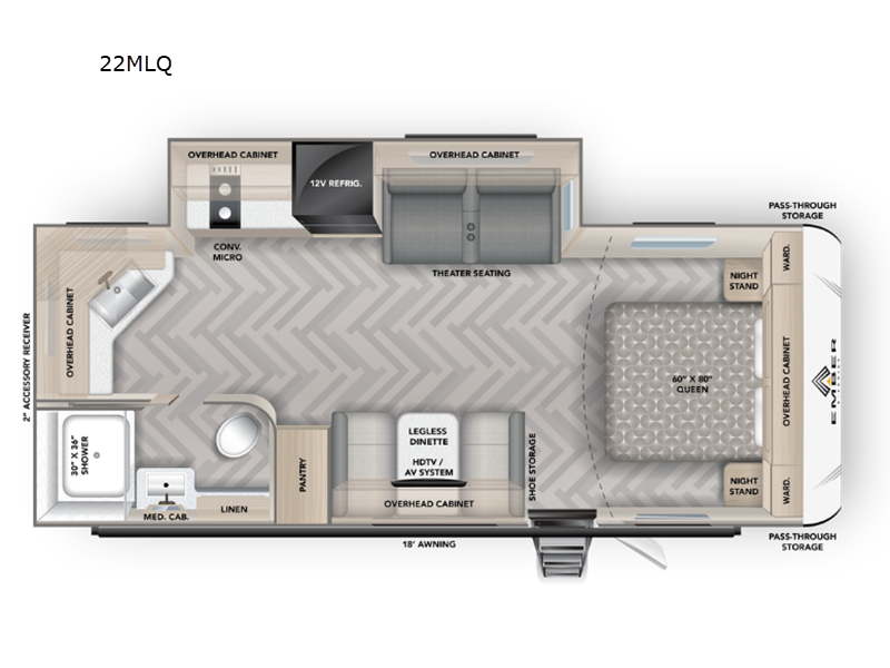 Explore the 2024 Ember RV E-Series 22MLQ: Your new adventure awaits! Discover spacious interiors, modern amenities, and superior performance in this stylish, family-friendly RV. Perfect for unforgettable journeys.