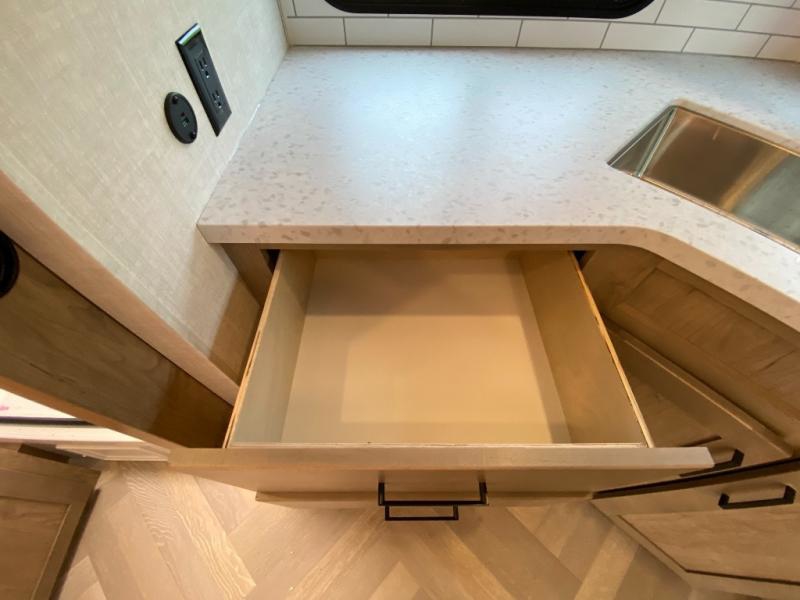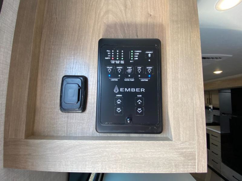 With any E-Series travel trailer by Ember RV you will enjoy a lightweight RV with all the "Essentials" needed for memorable trips in the great outdoors! Each model is constructed with durable laminated Azdel Onboard composite walls, a full walkable roof with a one-piece Tufflex PVC roofing material, and a gel-coated fiberglass exterior. The Dexter axles with E-Z lube hubs and forward self-adjusting electric brakes plus Goodyear Endurance tires will provide a smooth tow from home to campground. You will appreciate the Congoleum DiamondFlor "carpetless" interior that is easy to clean, and the hardwood framed cabinet doors will create a more residential feel. Each model includes a tankless on-demand water heater for endless hot showers and an 18,000 BTU Max Cool "Whisper Quiet" A/C, which is the largest single A/C in its class! An EmberLink Smart RV system will let you easily control features such as lights and slides and you can wash away those rainy day blues by watching the HDTV with a built-in Bluetooth AV system. If you're looking for off-grid capabilities, you might want to choose the optional Off-Grid Solar Package with 400 total watts of solar panels, a 2,000W Pure Sine wave inverter, and a Victron MPPT solar controller!