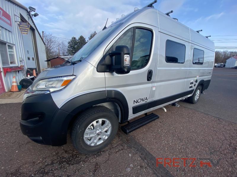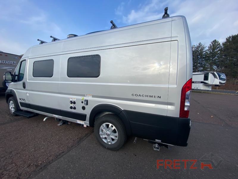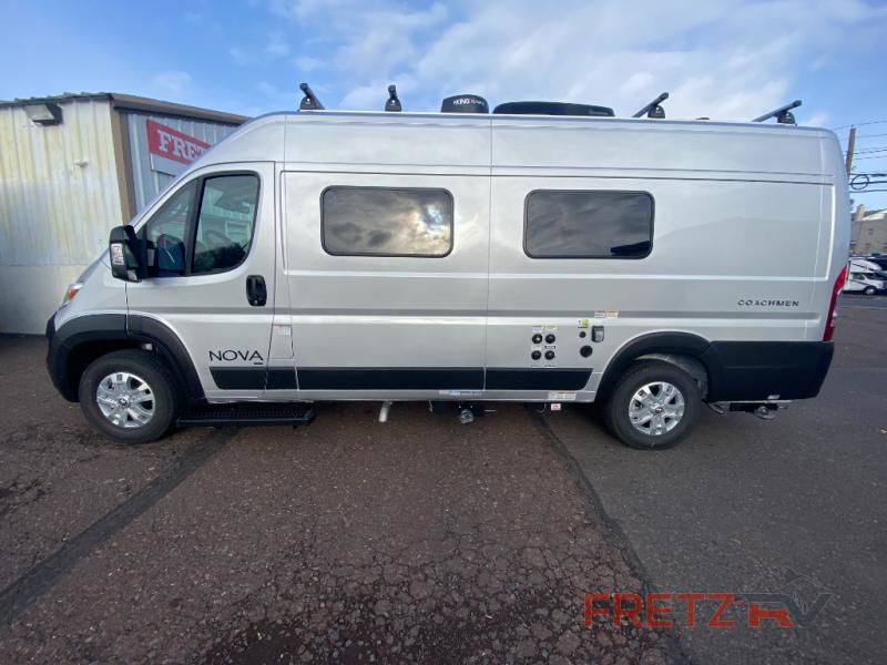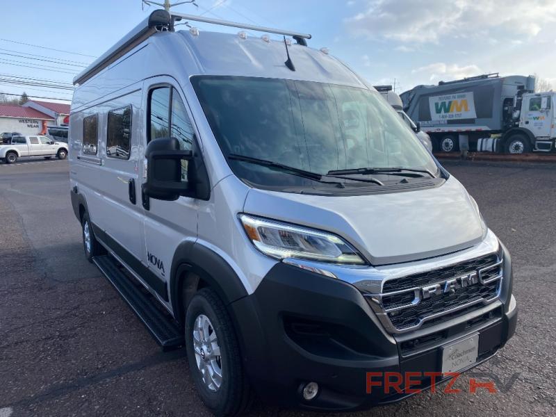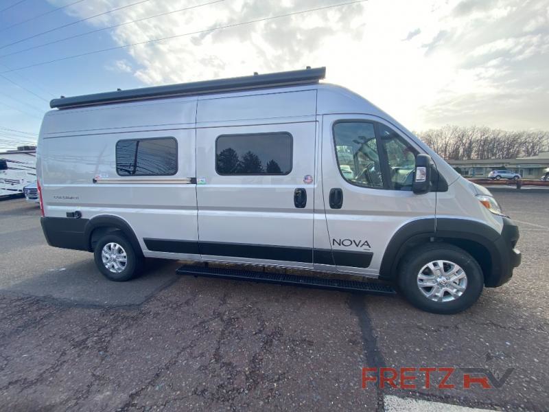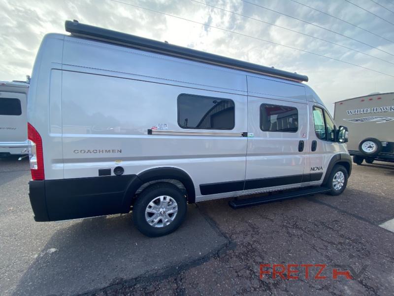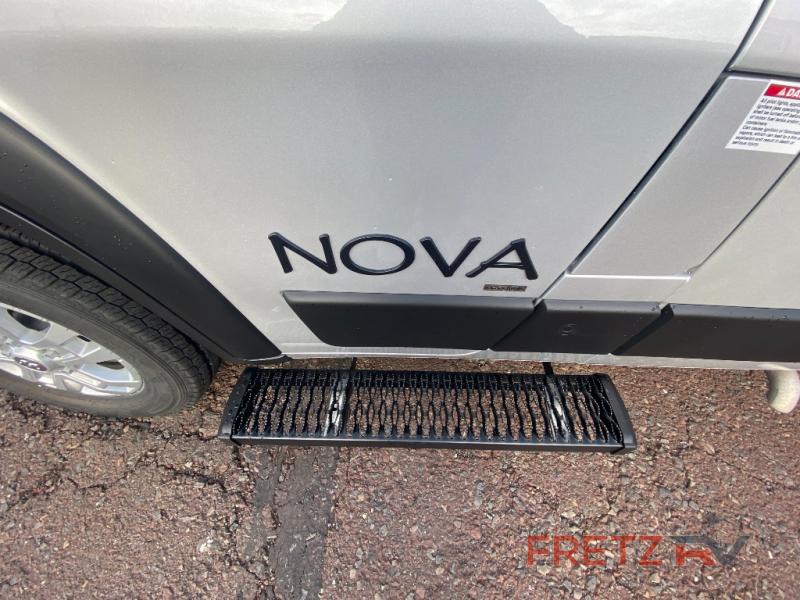 Each Nova Class B gas motorhome by Coachmen features Sumo Spring front and rear suspension for a smooth ride. Each unit is built on a Ram ProMaster 3500 chassis, and is powered by a 3.6L V6, 24 valve engine with 280 HP. You will appreciate the innovative Firefly multiplex system, the Sure Level tank sensors, and the 3 Group 31, 115AH AGM batteries for added power, as well as a new 24" LED Smart TV to help keep you entertained on long trips. Inside, you'll find solid hardwood cabinetry, a fiberglass shower verses the competitors ABS shower, a remote control MaxxAir fan with a rain sensor, and many more comforts to make you feel right at home. There is also a Truma Aventa 13,500 BTU A/C with three speeds, a dehumidifier, and night mode to ensure your comfort throughout each trip!