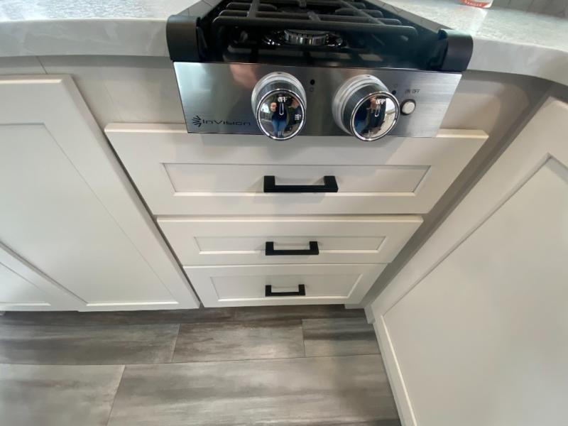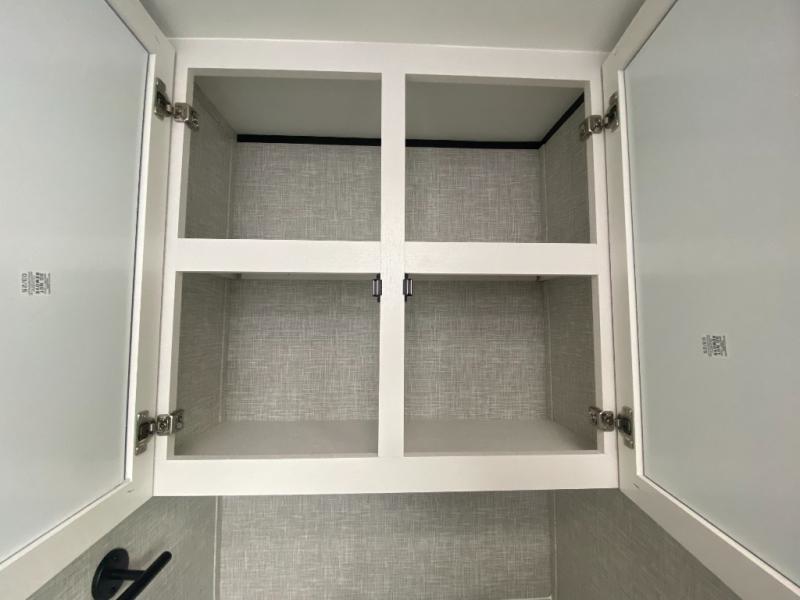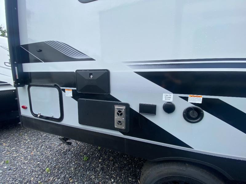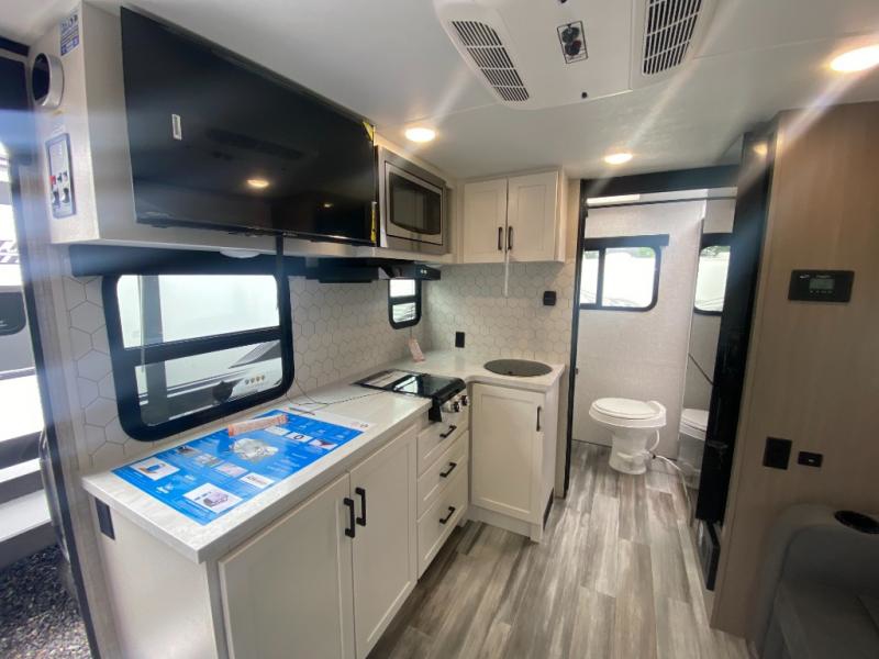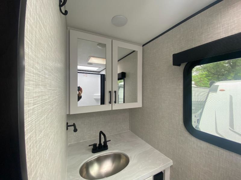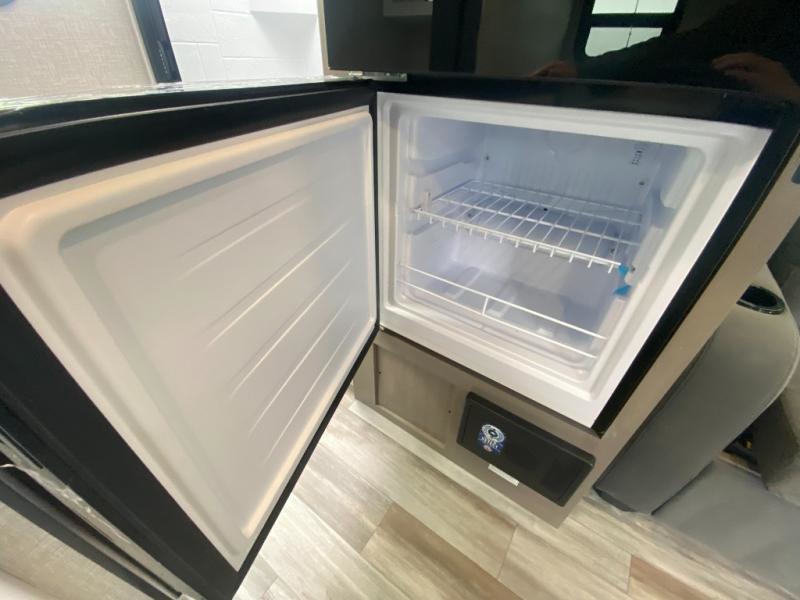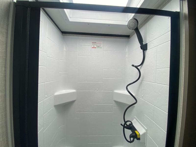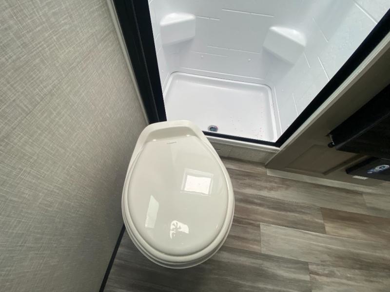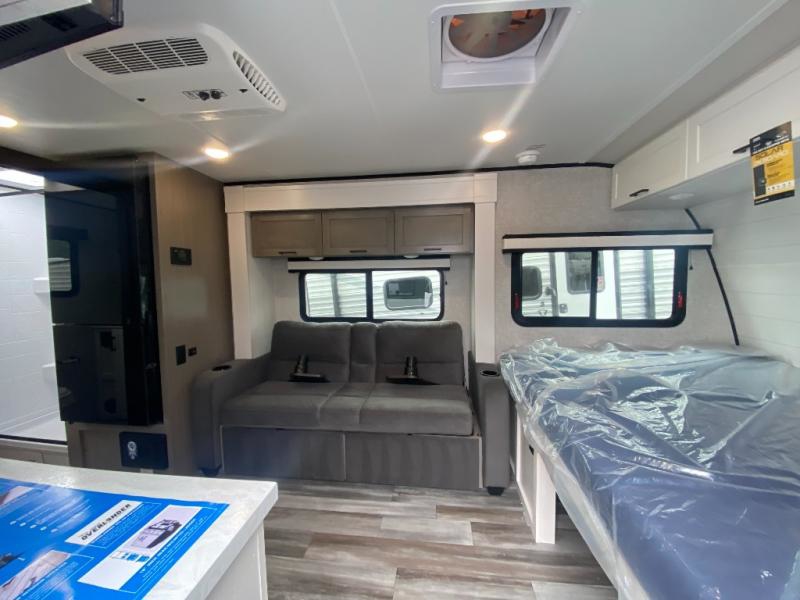 This travel trailer will feel just like home with its front queen bed, full rear bath, and fully-equipped kitchen! There is a jack-knife sofa slide out where you can relax each day, and there are swivel tables so you can enjoy meals here too. The LED Smart TV will let you stay in and watch movies if the weather isn't cooperating, or you can grab the fishing gear from the outside storage and weather the storm! You'll also find plenty of interior storage in the multiple overhead cabinets and the bath medicine cabinet!