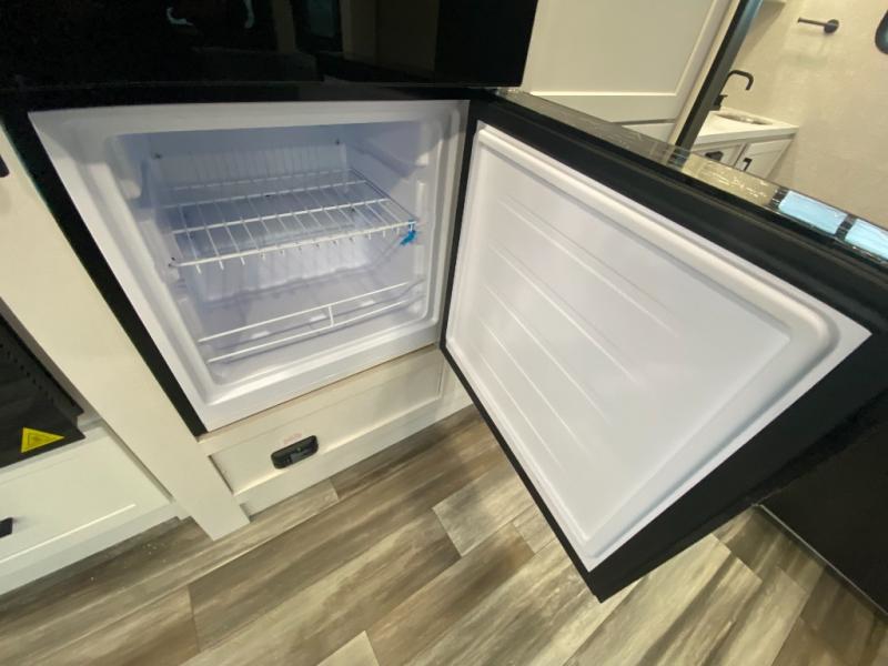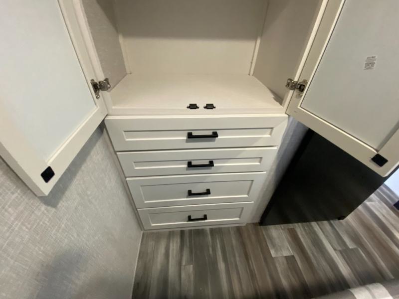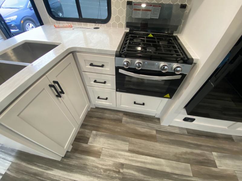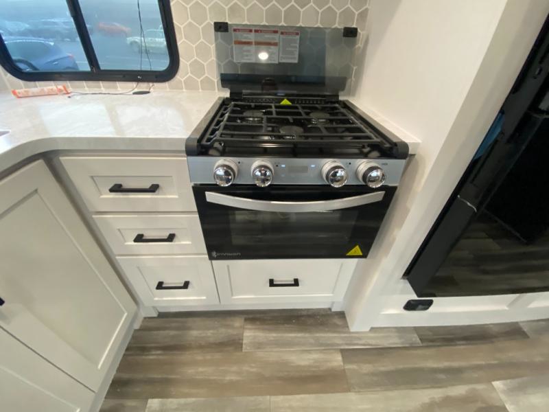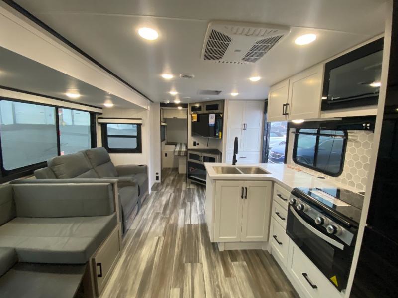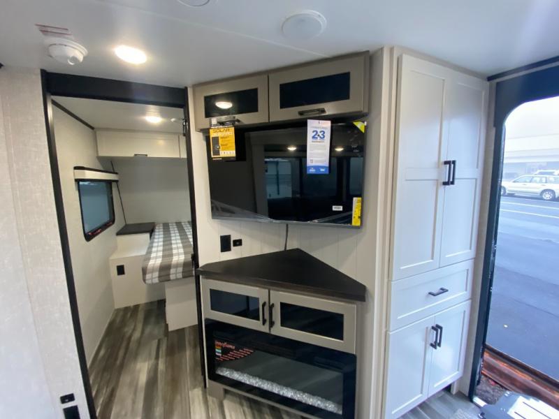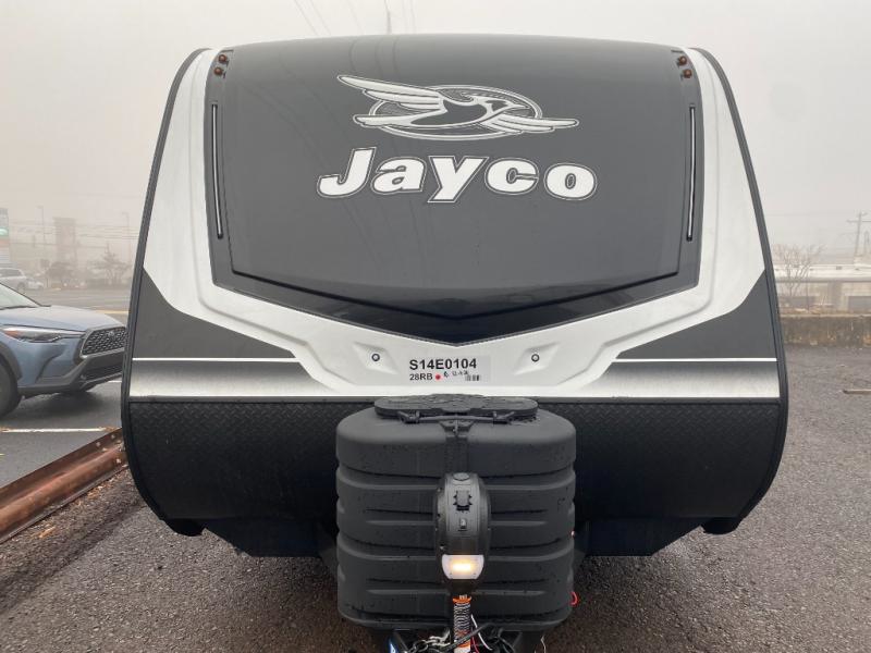 With any Jay Feather travel trailer by Jayco, you will enjoy lightweight towing, convenient exterior amenities, and at-home comforts inside! The Overlander 1 Solar Package included within the Jay Sport Package comes with a 200W solar panel and a 30-amp digital controller so you can enjoy some off-grid camping. There is also a modern graphics package with a dual-colored sidewall, LCI Solid Step fold-down aluminum tread steps on the main entry door, and Climate Shield 0 -100° F tested weather insulation package that will allow you to camp in all sorts of climates. The Customer Value Package will make time outdoors easier than ever with a power tongue jack and a Rock Solid stabilizer system, plus American-made nitro-filled Goodyear tires with self-adjusting electric brakes. More exterior features include a Keyed-Alike locking system, marine grade exterior speakers, a Magnum Truss roof system, and the list goes on! And we haven't even touched on the interior comforts, like the residential style seamless countertops and vinyl flooring throughout, decorative backsplash, handcrafted hardwood door/drawer fronts, and multiple USB charging ports to keep you going!