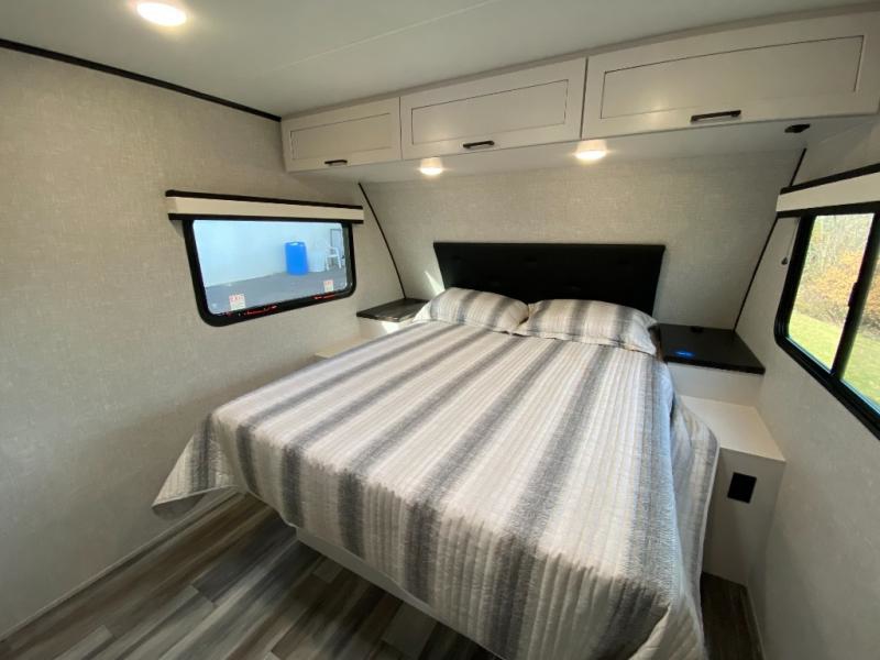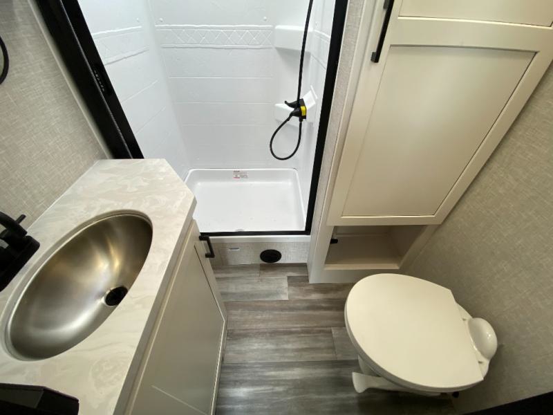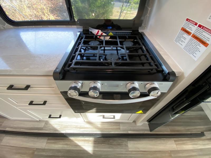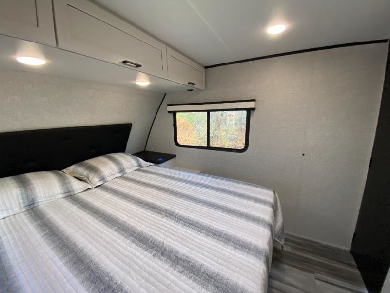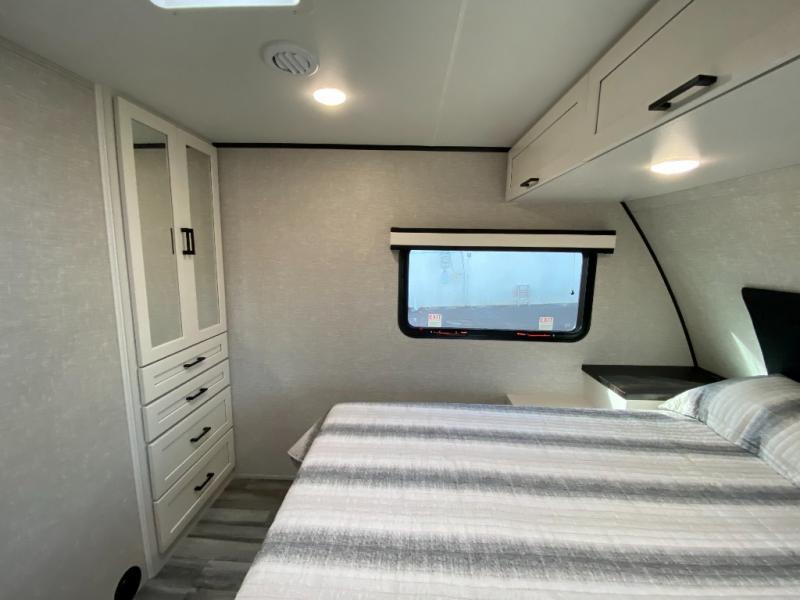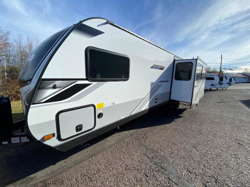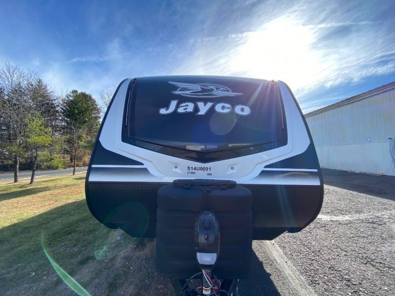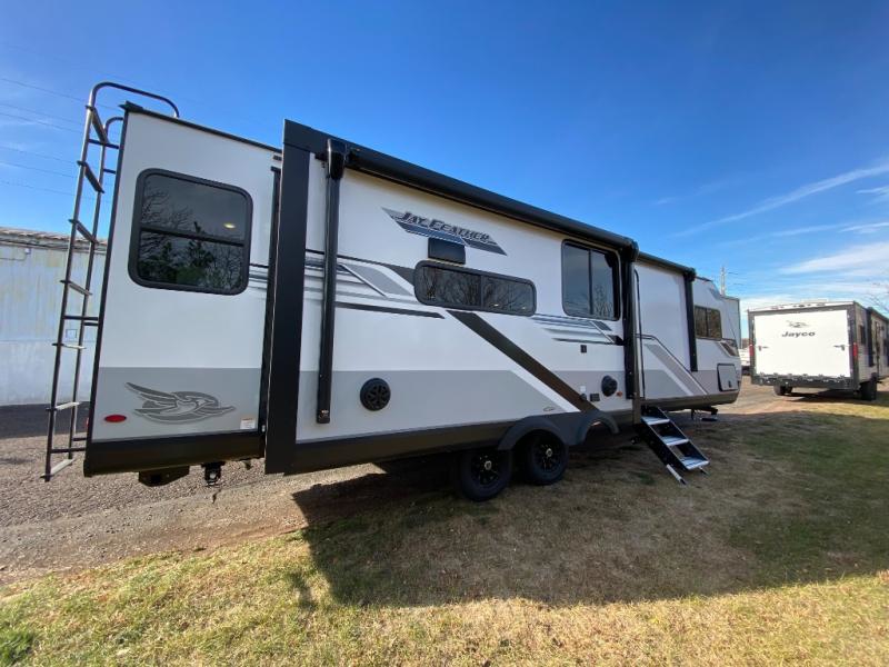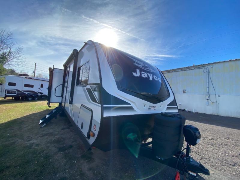 With any Jay Feather travel trailer by Jayco, you will enjoy lightweight towing, convenient exterior amenities, and at-home comforts inside! The Overlander 1 Solar Package included within the Jay Sport Package comes with a 200W solar panel and a 30-amp digital controller so you can enjoy some off-grid camping. There is also a modern graphics package with a dual-colored sidewall, LCI Solid Step fold-down aluminum tread steps on the main entry door, and Climate Shield 0 -100° F tested weather insulation package that will allow you to camp in all sorts of climates. The Customer Value Package will make time outdoors easier than ever with a power tongue jack and a Rock Solid stabilizer system, plus American-made nitro-filled Goodyear tires with self-adjusting electric brakes. More exterior features include a Keyed-Alike locking system, marine grade exterior speakers, a Magnum Truss roof system, and the list goes on! And we haven't even touched on the interior comforts, like the residential style seamless countertops and vinyl flooring throughout, decorative backsplash, handcrafted hardwood door/drawer fronts, and multiple USB charging ports to keep you going!