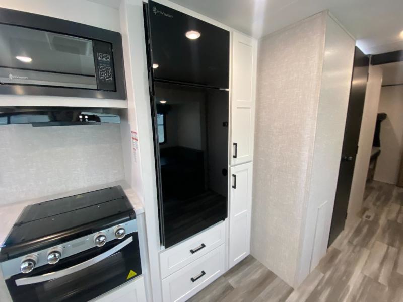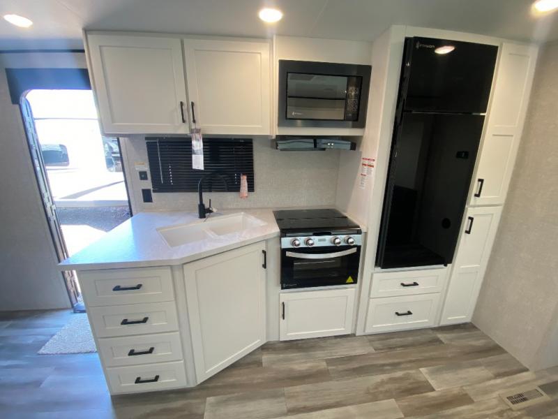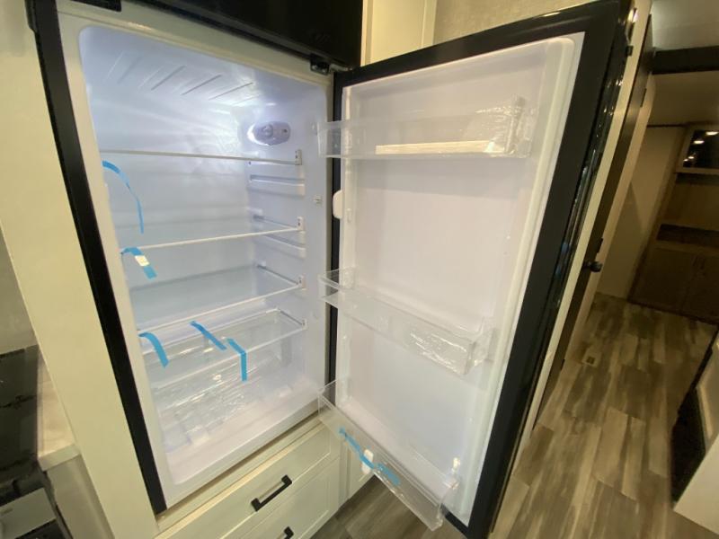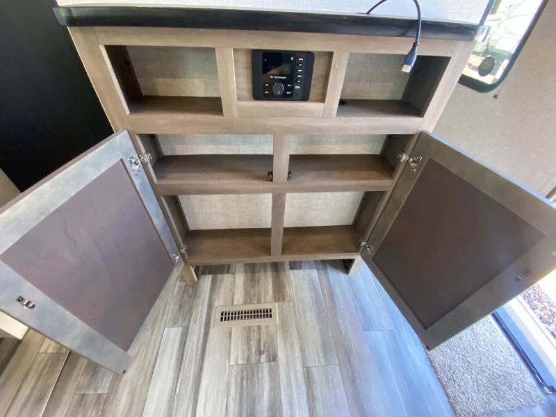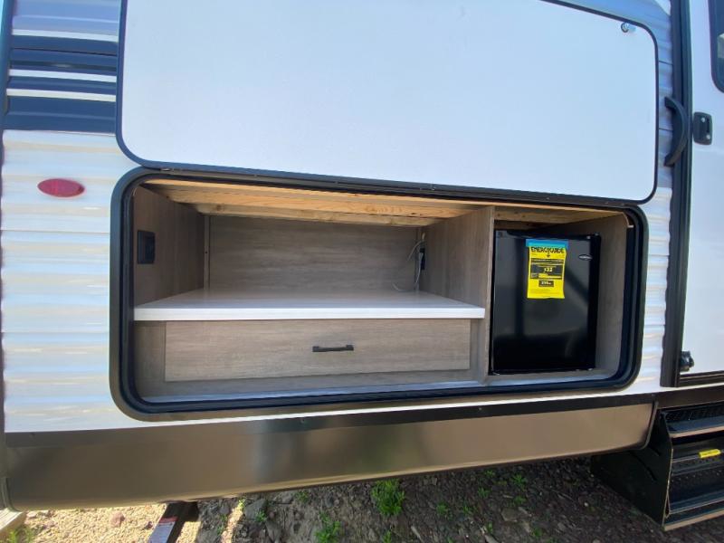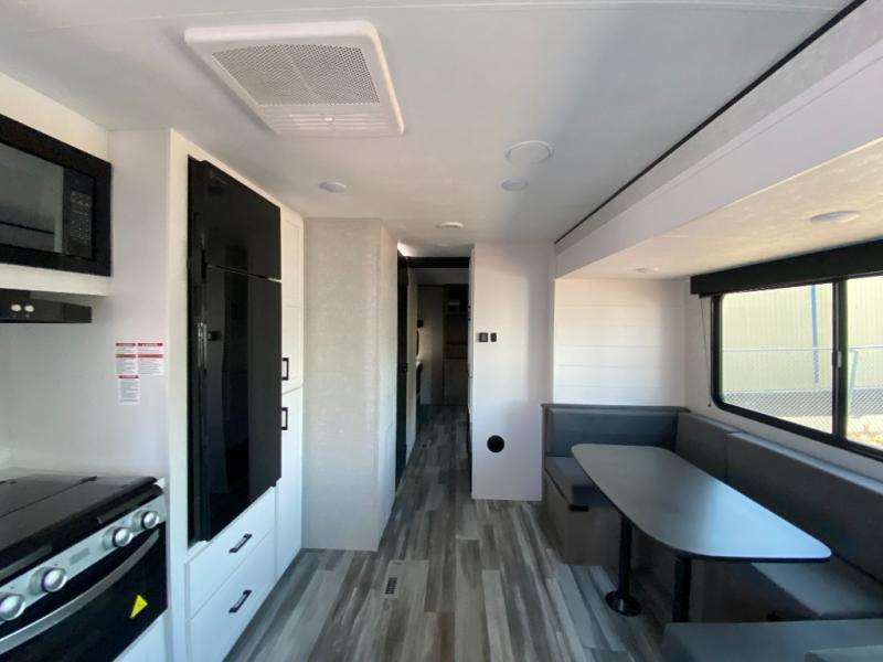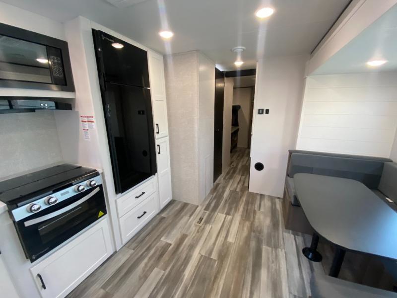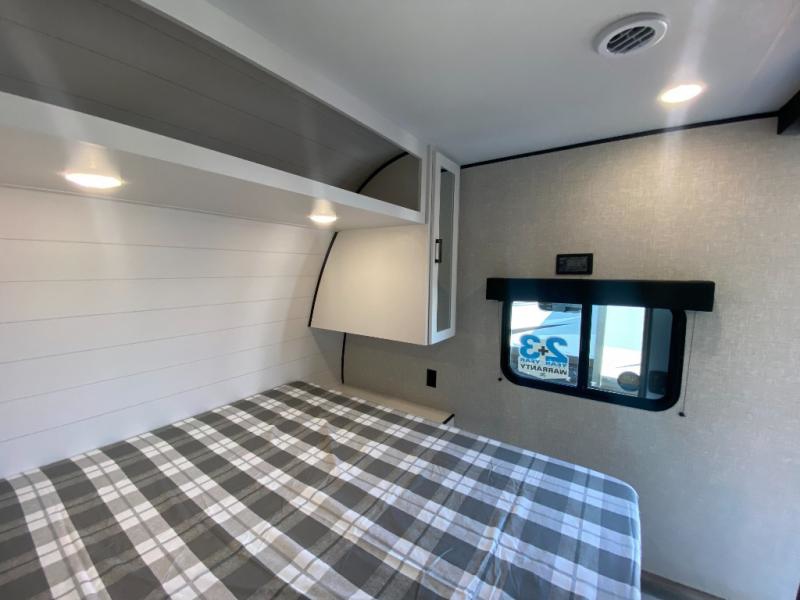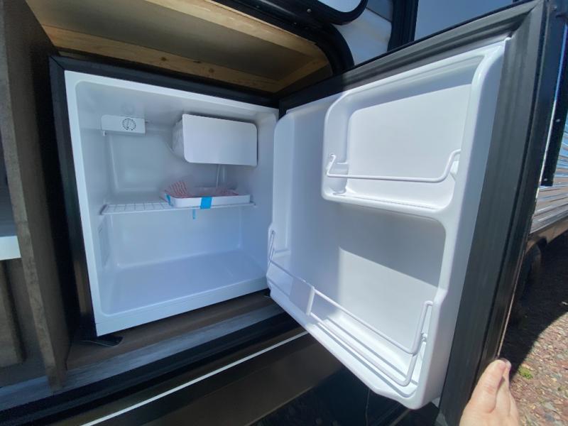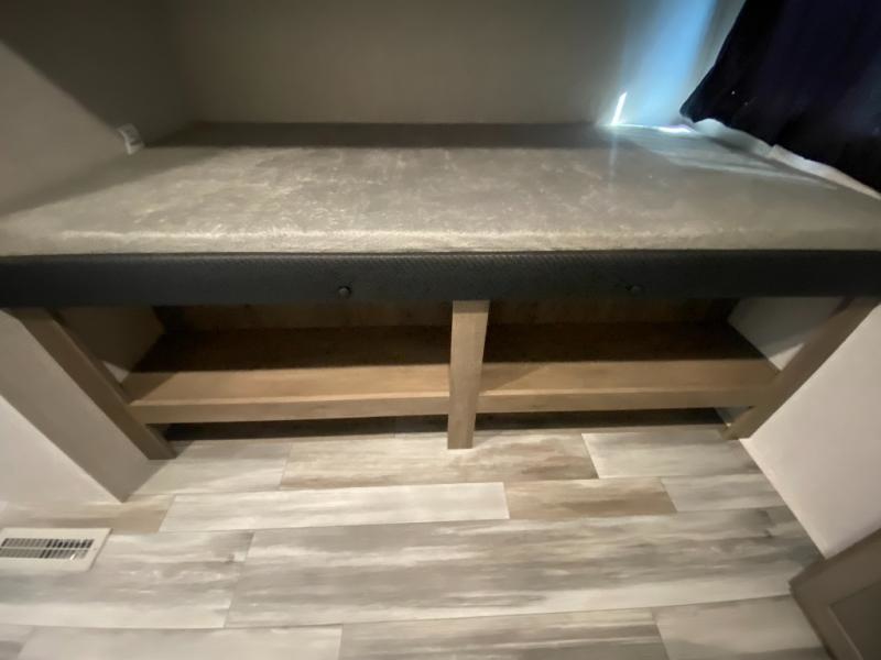The whole gang can join along on camping trips in this double slide out travel trailer! There is a rear private bunkhouse with a bunk bed and J-cube futon sofa below plus two additional bunks across the room. You'll find your own space in the front private bedroom, which also includes an RV queen bed and dual wardrobes. The middle kitchen and living room will be a favorite place to come together since there is a jack-knife sofa and U-shaped dinette plus a fully-equipped kitchen to make meals each day. This model also includes a full bath with one of the dual entry doors for added convenience!